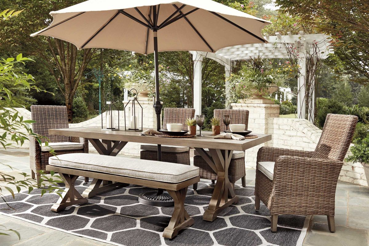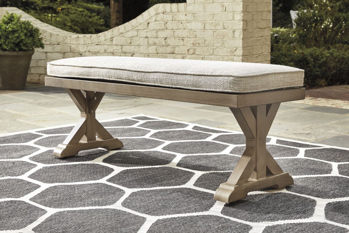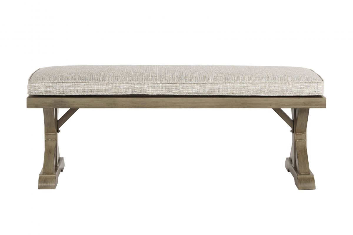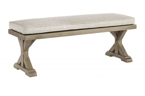 Sporting an easy-on-the-eyes look inspired by driftwood, this bench with cushion elevates the art of indoor-outdoor living. Beautiful and durable enough for indoor and outdoor use, this casually cool bench entices with striking X-leg farmhouse styling and a plush, removable cushion wrapped in high-performing Nuvella® fabric that’s a breeze to keep clean.