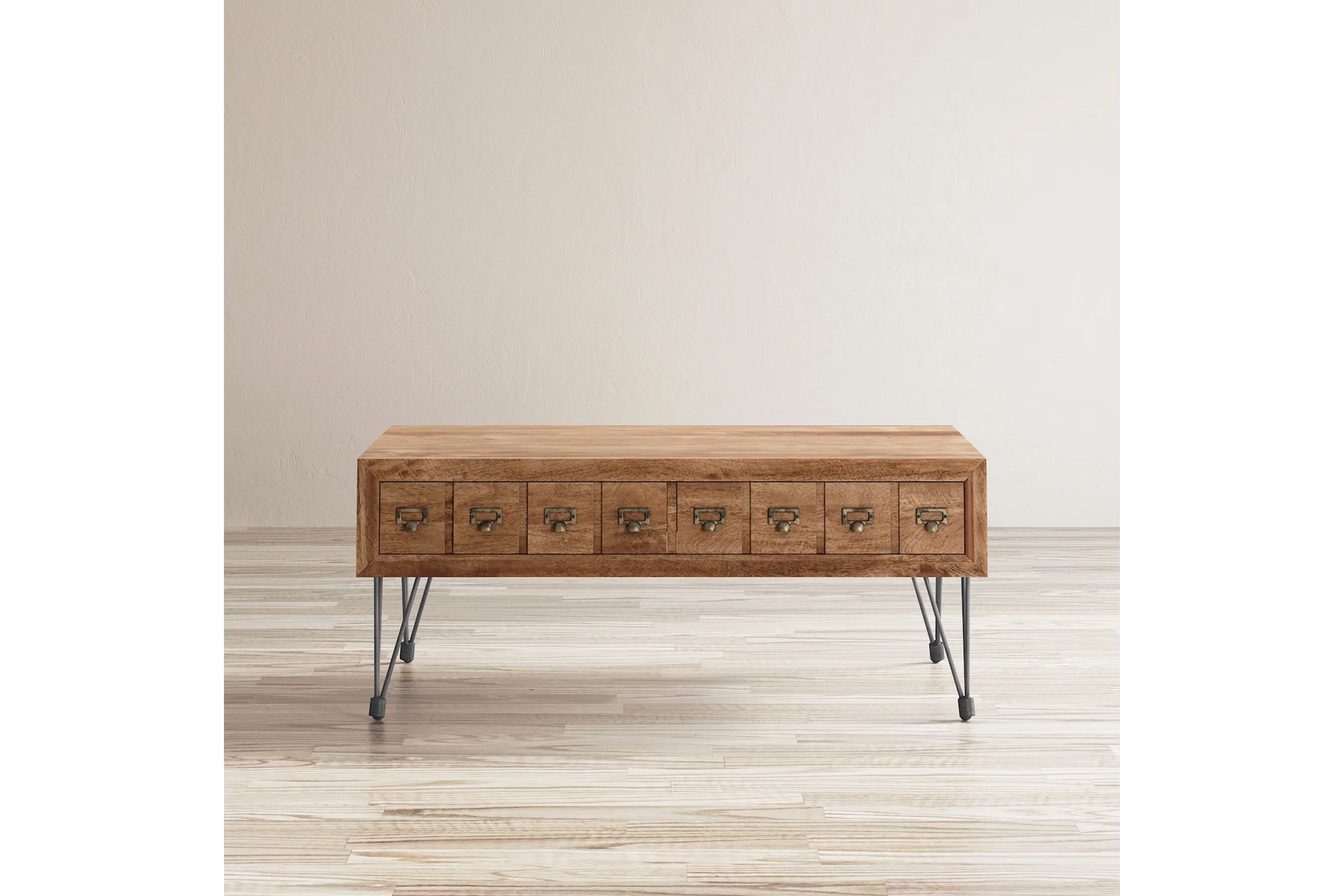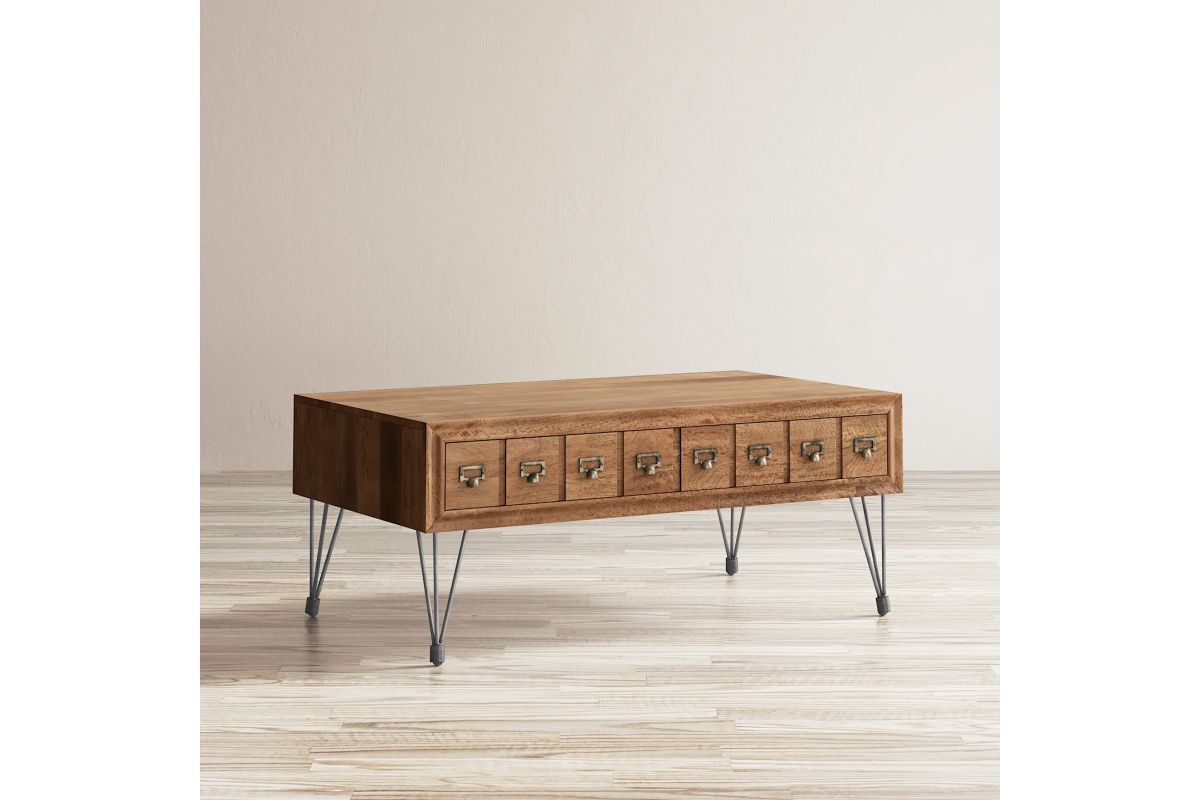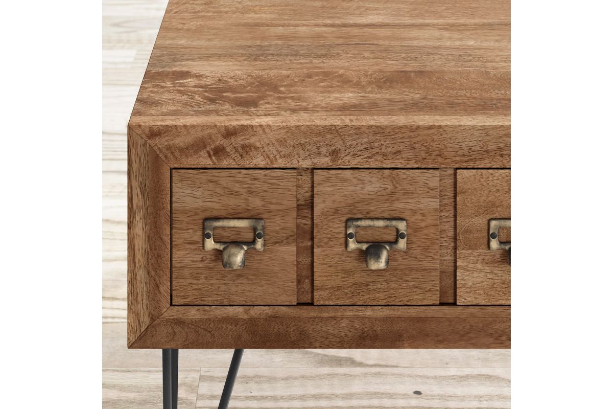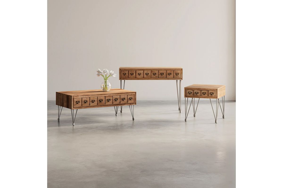 The details of this collection are as classic as they are eye-catching: beautiful apothecary hardware, naturally finished solid wood, and metal legs with a unique industrial look. Add spark to your living space with these chic and on-trend pieces.