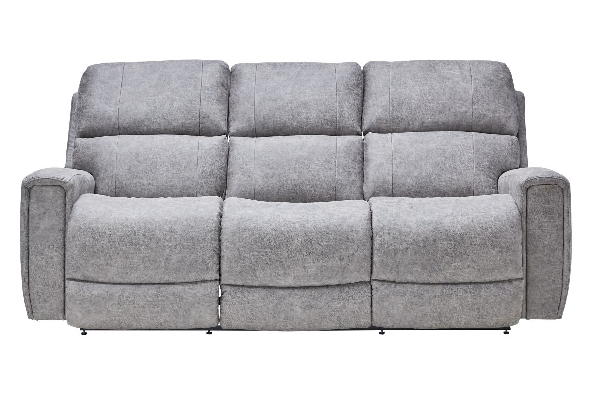 Experience modern comfort and style with this La-Z-Boy reclining sofa, featuring clean, contemporary lines and a versatile grey fabric finish. Designed for relaxation, it offers plush bucket chaise seating, supportive split back cushions, and broad track arms wrapped in smooth, streamlined padding. Power reclining on both ends, memory settings, and a convenient home button make it easy to find and return to your perfect position, with optional wireless remote and built-in USB ports for added convenience. Crafted with high-quality foam and fiber fill for long-lasting comfort, this durable fabric sofa is built to resist everyday wear and fading. Its sleek design, premium materials, and customizable options make it a standout addition to any modern living space.