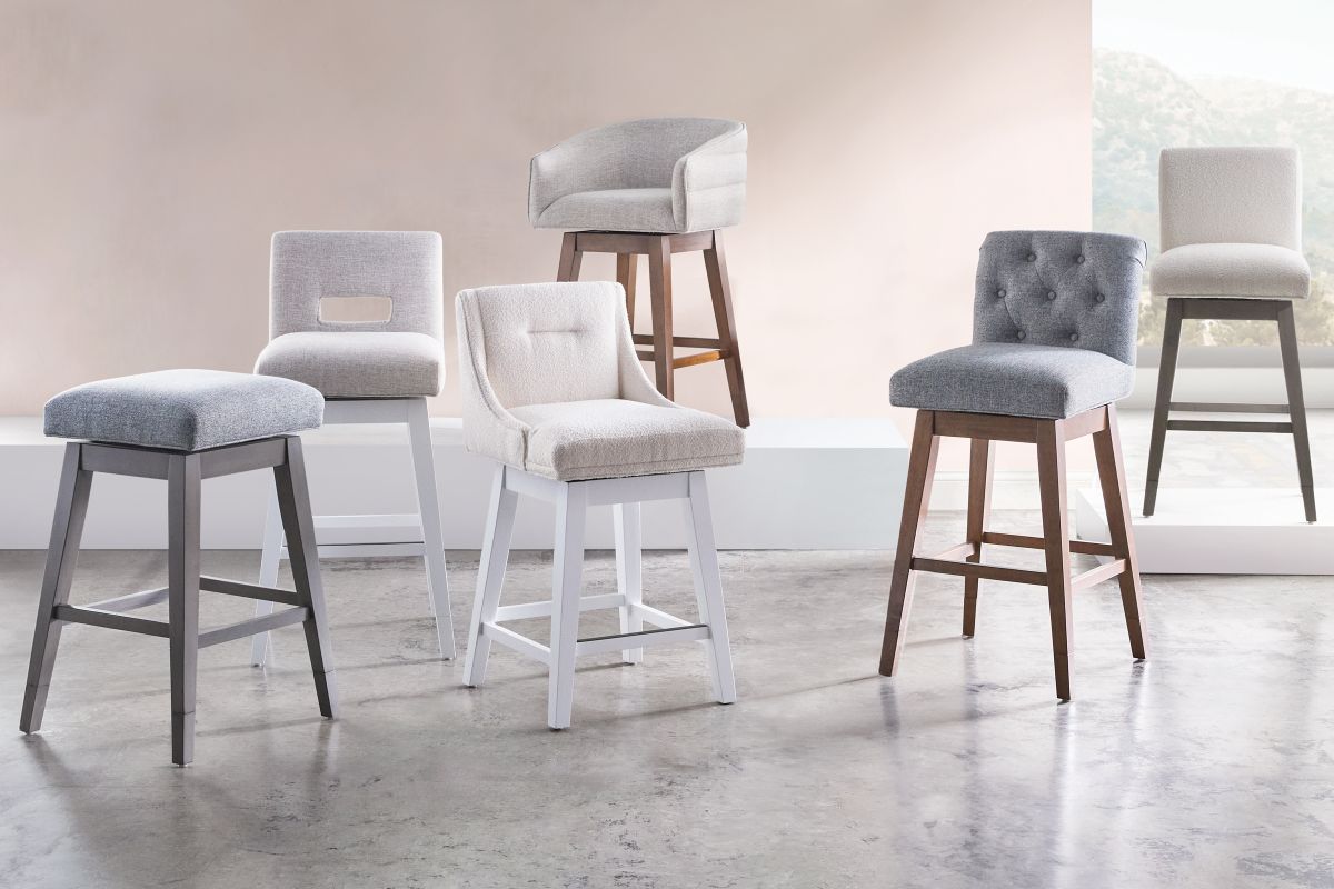 Uniquely Stools are On Trend designs with style and color options for every interior * High performance fabrics resist wear and offer exceptinal cleanability. * Built to Withstand up to 350 Lbs * Detachable swivel plate allows for 360 swivel or stationary customization * Generously-sized seats * Premium high-density foam core is wrapped in conform foam and fiber batting allowing seat to maintain its original shape while offering comfort and support * includes steel reinforced leg extensions allowing you to easy transition from counter height to bar height * Bases are crafted in solid wood to withstand the test of time