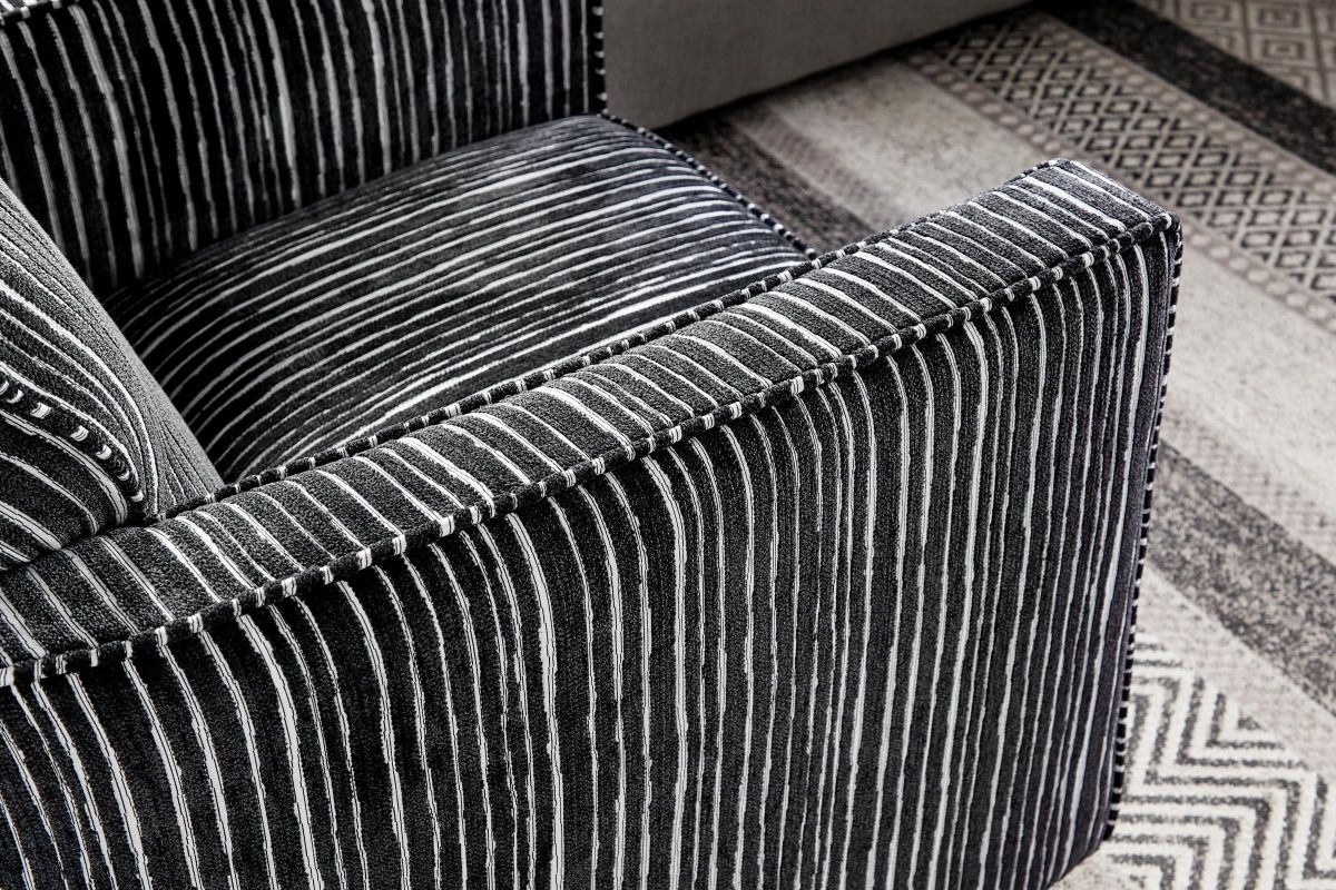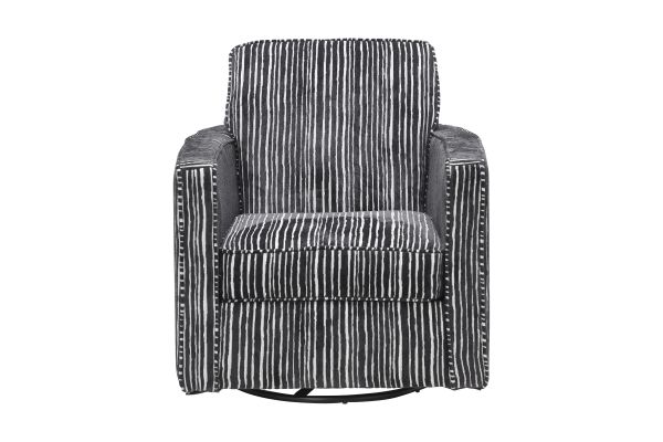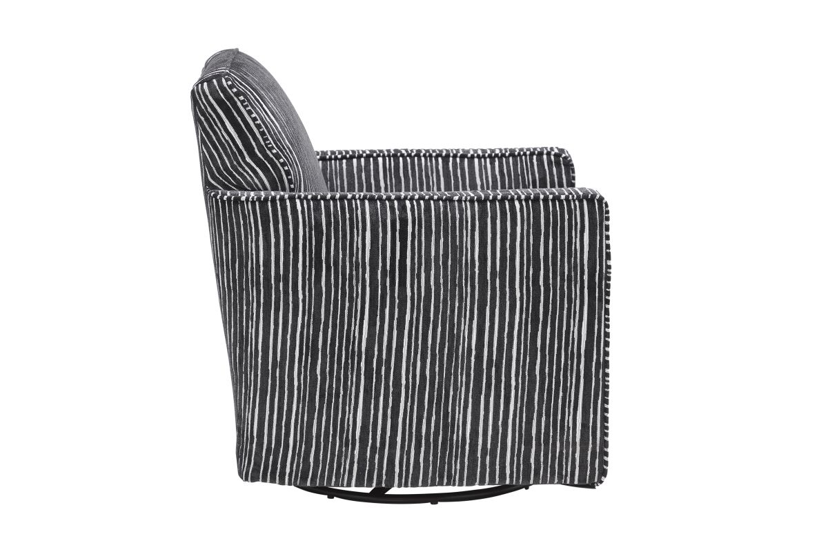 Crafted with contemporary flair and premium comfort in mind, the Clawson Swivel Chair is designed to elevate your home decor with its striking design and versatile functionality. Make a statement with the bold black and white upholstery. The eye-catching pattern adds a touch of visual interest and sophistication to any room, while the also creating a dynamic and stylish focal point.