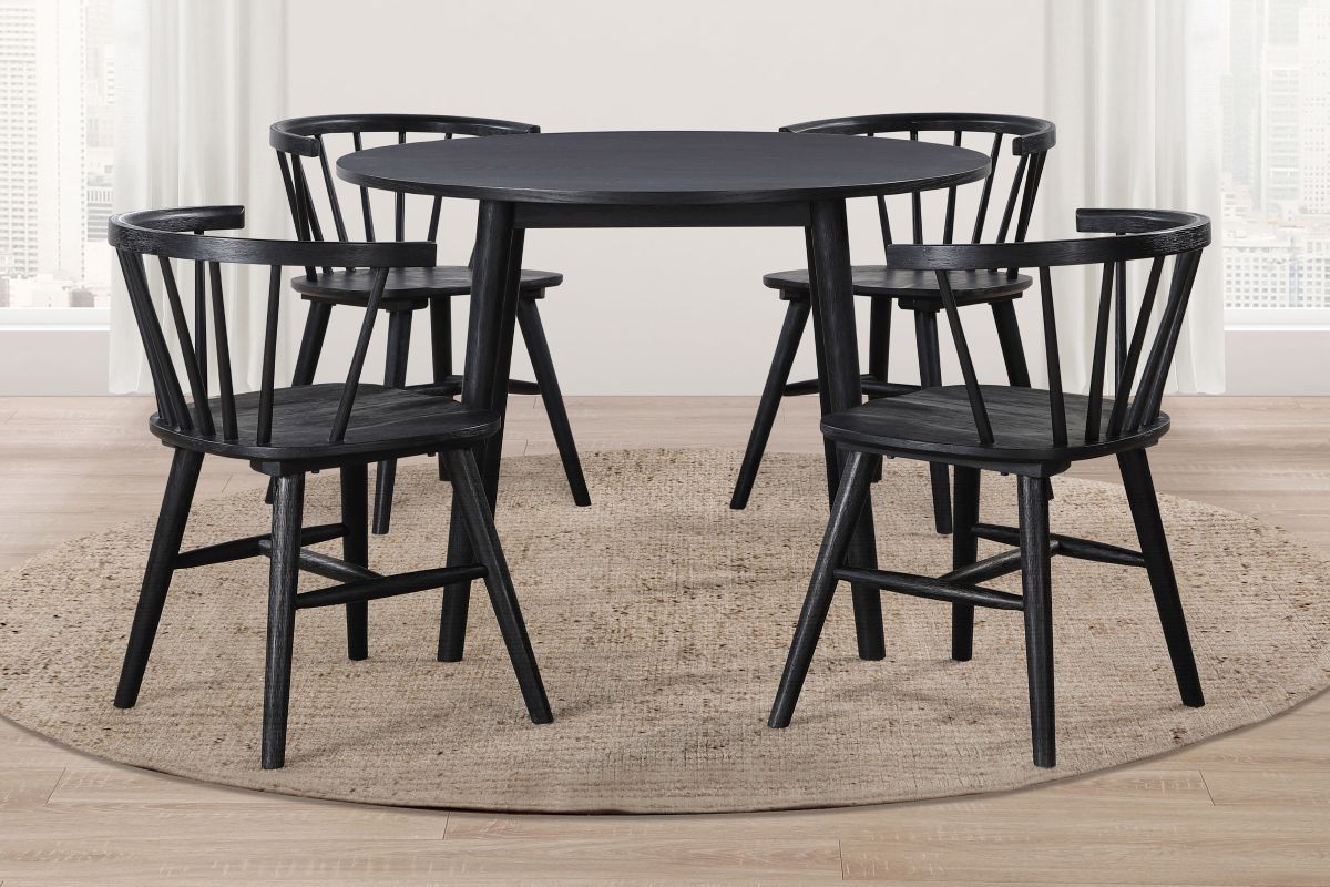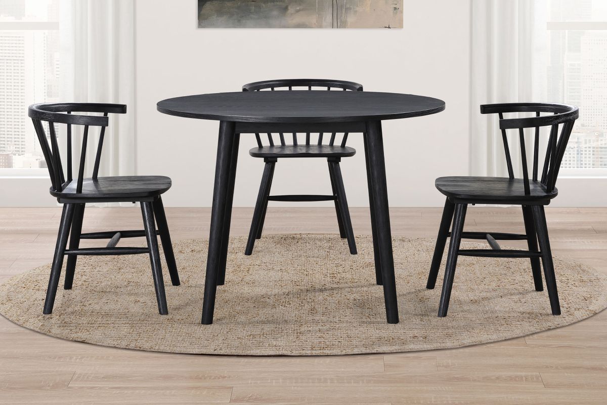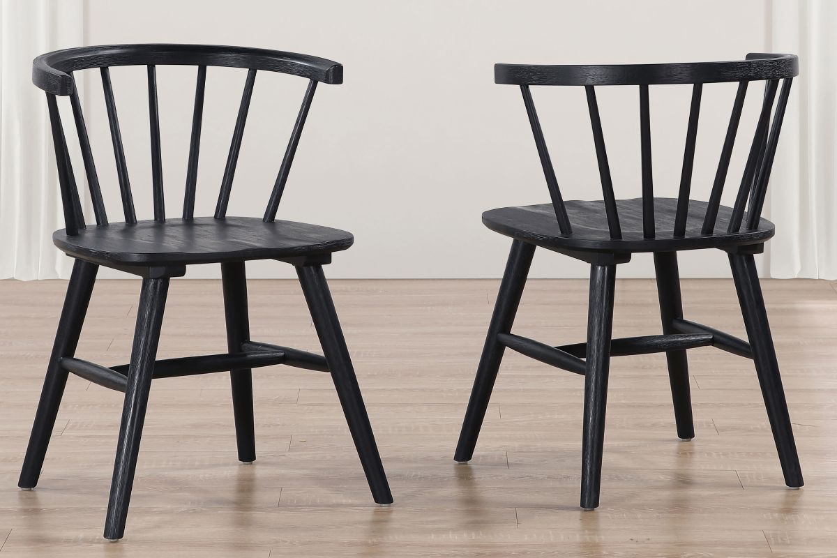 The Ava dining chair features a distinctive spindle back design, in a stylish black color.