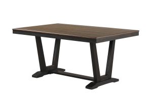 Urban rustic styling and chic tailored touches combine to create the Crawford dining room. Crafted with wood solids and oak veneers, the collection has a rubbed black finish. Perfect for gathering family and friends, the table features a plank style top and supportive trestle base.