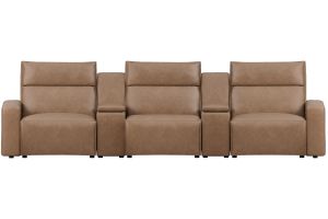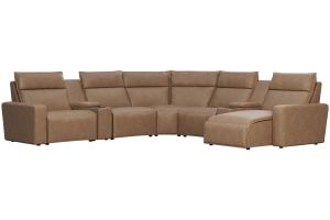 Discover the unlimited possibilities of the Modular Two dual power reclining collection, thoughtfully designed with both comfort and flexibility in mind. Contemporary in style and upholstered in a plush suede-soft microfiber, the sectional's tailored silhouette is enhanced by welted track arms and tufted back cushions for a look of refined elegance and serenity. Each piece is upholstered on all sides, offering endless opportunities for both reconfiguration as well as individual use. Dual power reclining functionality allows for easy adjustment in the headrest and footrest, providing the ultimate in personalized comfort. The media console includes Bluetooth speaker connectivity, retracting cupholders, wireless charging and a compartment with hidden storage for easy access to your lounging essentials. Designed for maximum versatility, the Modular Two offers endless configurations to suit your unique space and lifestyle. Whether you prefer a traditional L-shaped setup, a spacious U-shaped design, or something entirely custom, the Modular Two can be easily reconfigured to meet your needs. Select a preconfigured design or visit a showroom to learn about individual components and create the modular sectional perfect for your space and style.