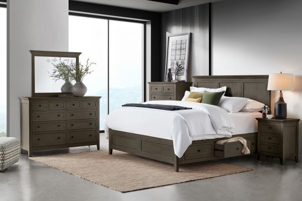 The San Mateo Storage Platform Bed combines traditional and modern styles to create a stylish and elegant look. Designed with both comfort and aesthetics in mind, this piece brings both form and function to your bedroom. This bed features various storage drawers that can be used to keep your space organized and clutter-free. The Grey finish and aged bronze hardware, this bed collection exudes warmth and sophistication.