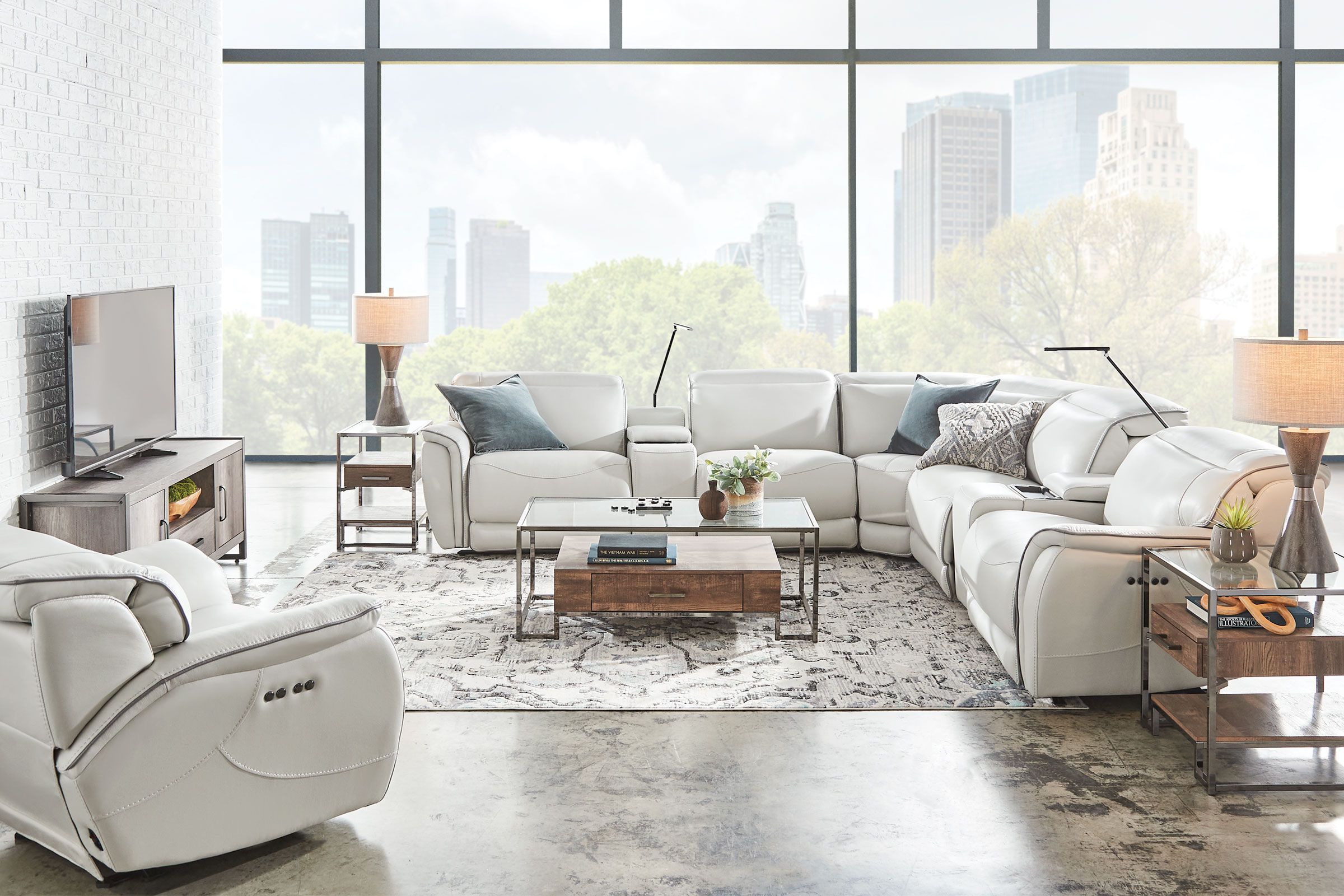 Offering an ultra-modern silhouette, generous proportions and the best in comfort and style, the Corbin Motion Collection was designed to accommodate every lifestyle. Distinctively molded foam arms and contrast piping with accent stitching add style while the articulating synchronized head and footrest's provide comfort. Extremely functional, the Corbin Motion Collection features a media console equipped with a wireless charging station, USB ports, a reading light, storage and hidden cupholders. A truly welcoming seating choice, the Corbin Motion Collection is fit for the whole family.