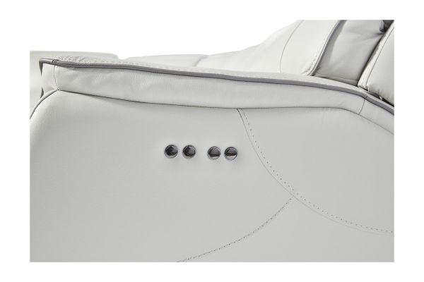 Offering an ultra-modern silhouette, generous proportions and the best in comfort and style, the Corbin Leather Dual Power Reclining Console Loveseat was designed to accommodate every lifestyle. Distinctively molded foam arms and contrast piping with accent stitching add style while the articulating synchronized head and footrest's provide comfort. Extremely functional, the Corbin Leather Dual Power Reclining Console Loveseat features a media console equipped with a wireless charging station, USB ports, reading lights, storage and hidden cupholders. A truly welcoming seating choice, the Corbin Leather Dual Power Reclining Console Loveseat is fit for the whole family.