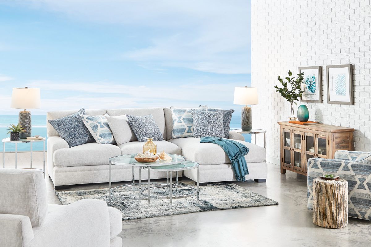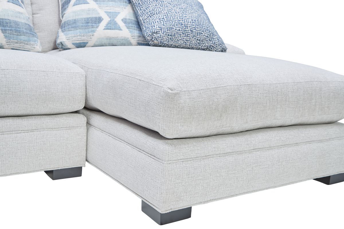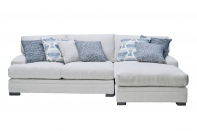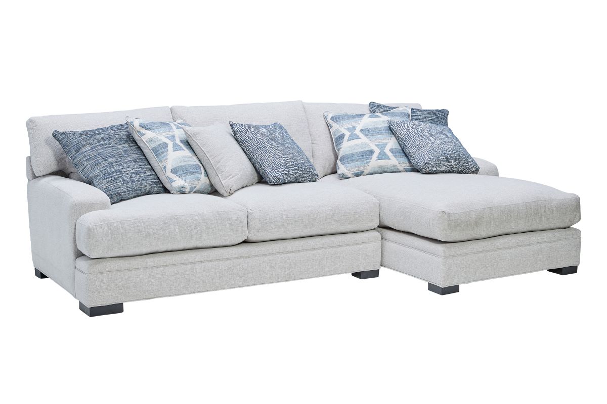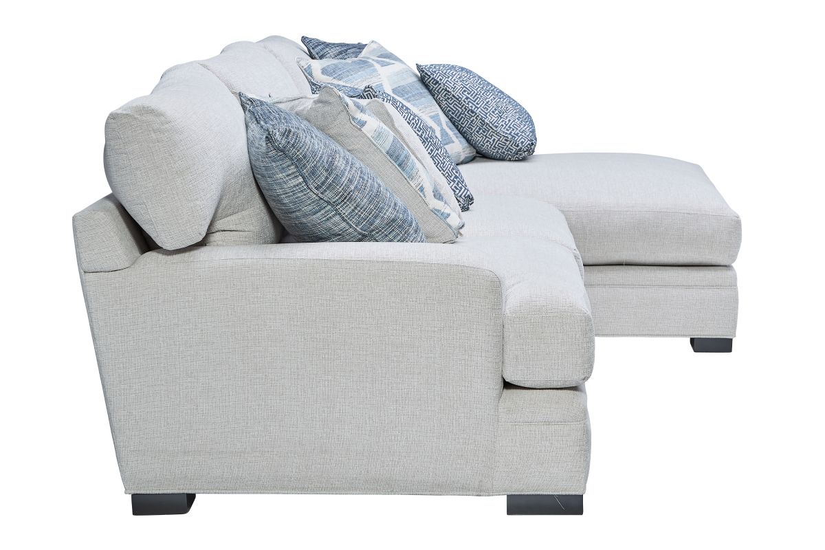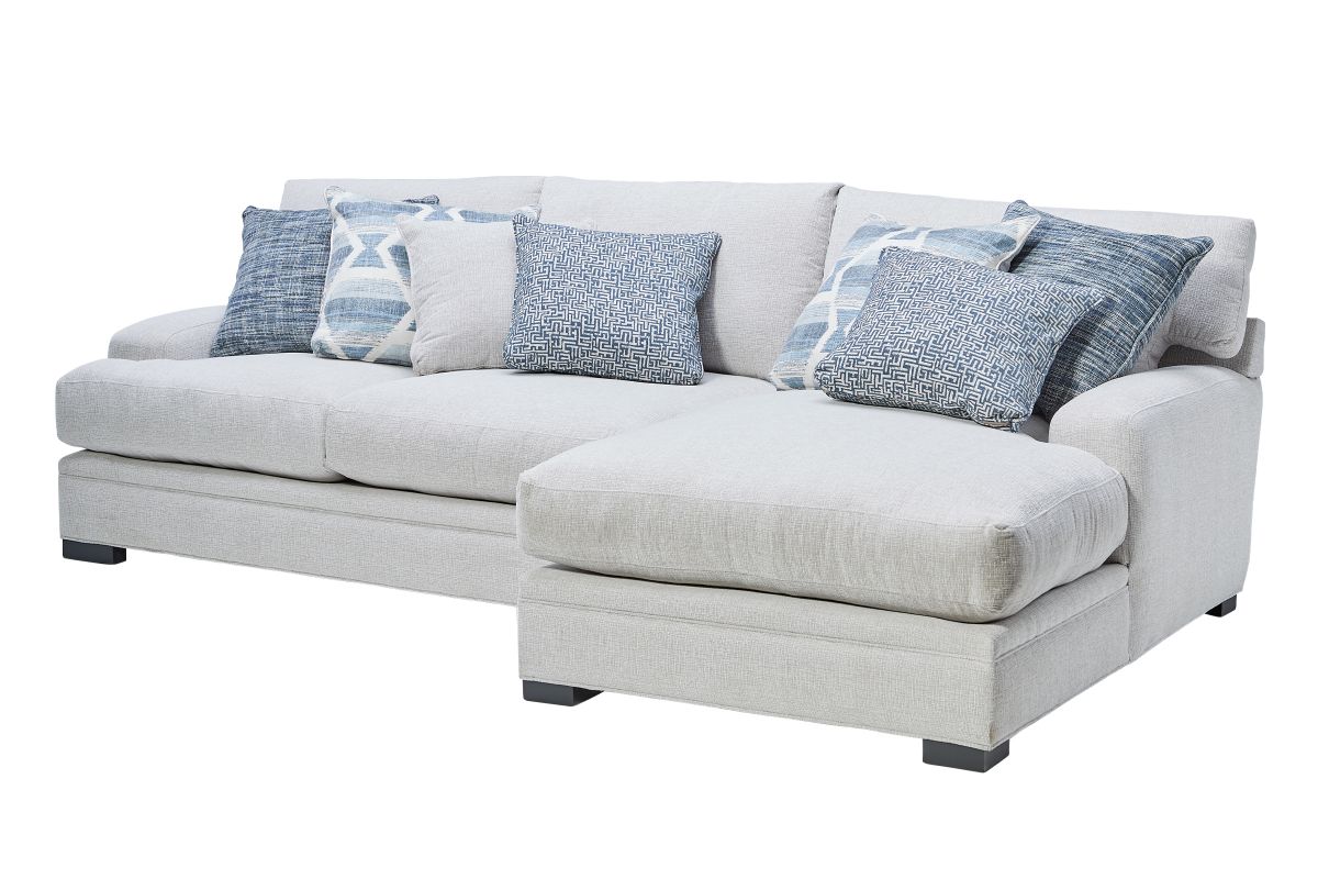 The Bulova Sectional is the ultimate large-scale focal point for your living space, combining contemporary style with deep, comfortable seating. The classic track arm design and colorful toss pillows add sophisticated and stylish detailing. Made in the USA, this oversized seating collection easily fits the entire family. The neutral beige fabric blends seamlessly with a variety of color palettes, and the vibrant toss pillows provide a burst of color. Host endless family movie nights on the elegant Bulova Sectional.