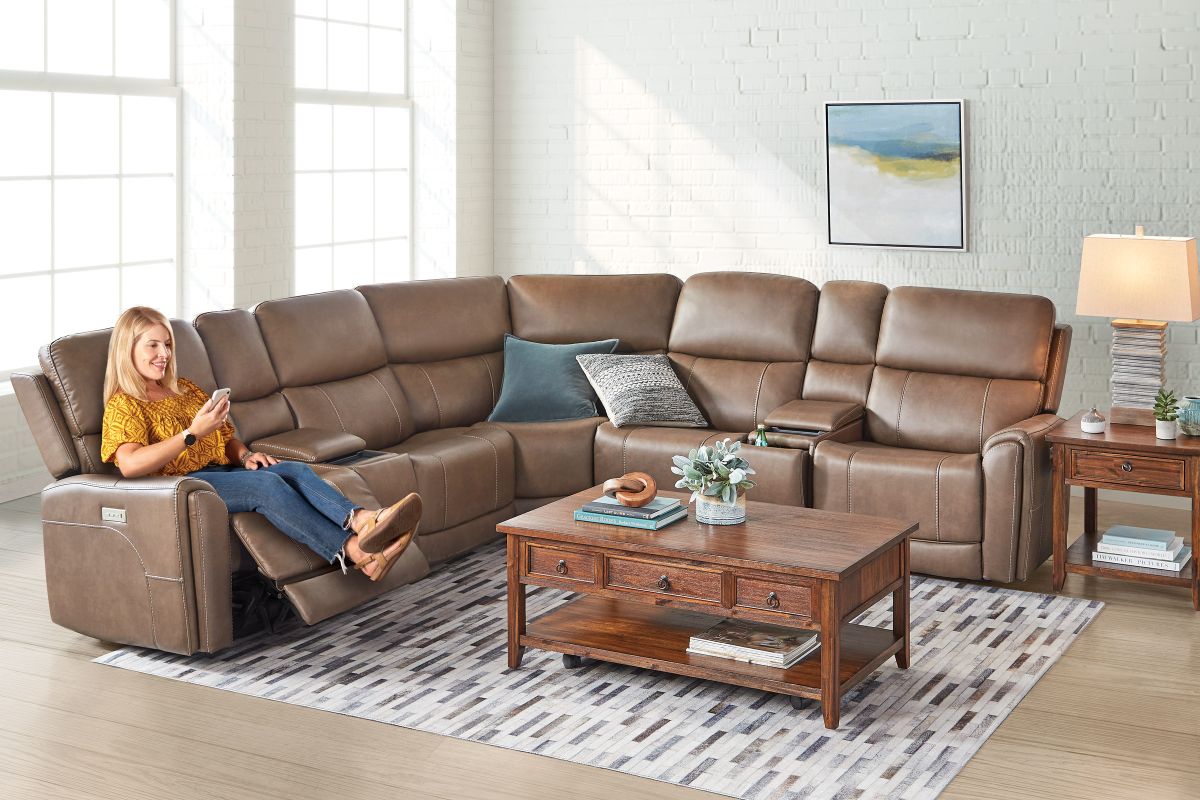 Pairing the comfort of a traditional recliner with the sophisticated stylings of a modern frame, the Troy 7-Piece Triple Power Reclining Collection will transform your space. Modernized with oversized seat depths and a clean, tailored frame the Troy Collection will provide enough seating for the whole family. Featuring hidden cupholders, power reclining headrests & back, lumbar support and wireless charging to bring you the ultimate comfort and convenience.