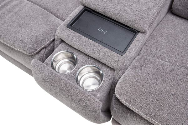 The Vixen 6-Piece Triple Power Reclining Sectional features a console with hidden cupholders, a wireless charger for your devices, and storage, as well as 3 recliners that all feature the triple threat of power reclining, power adjustable headrests, and power adjustable lumbar support.