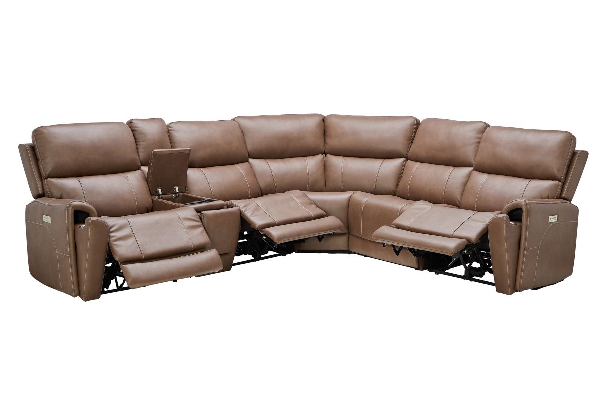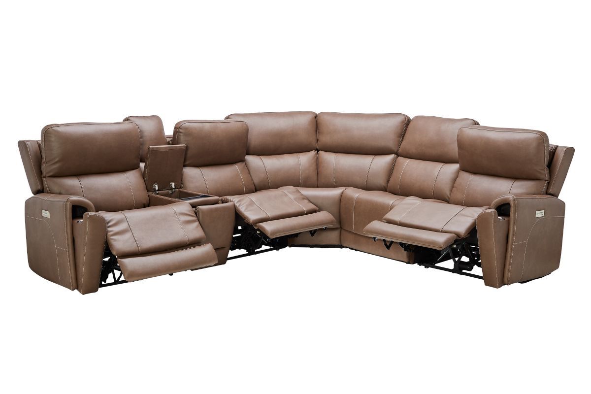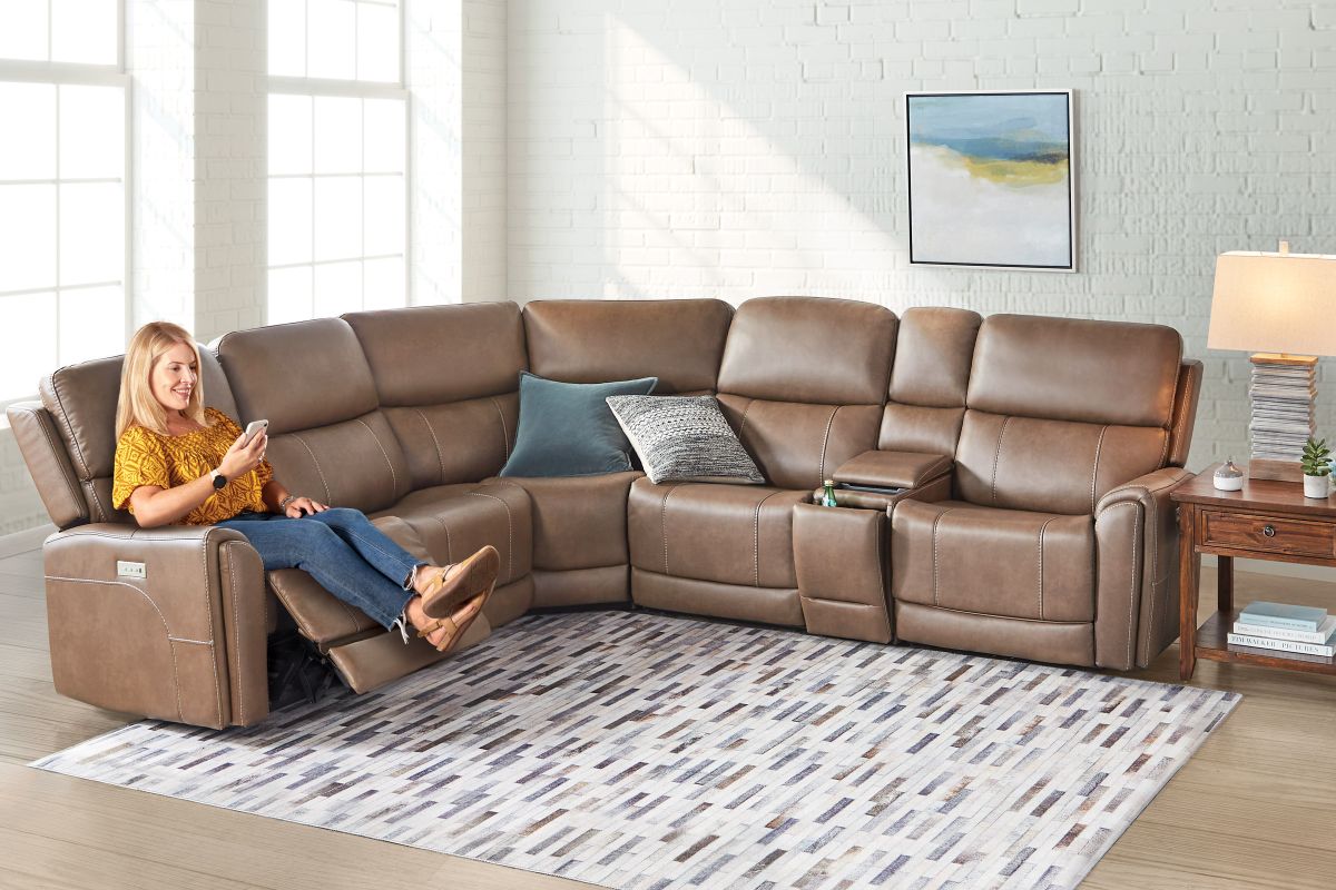 Pairing the comfort of a traditional recliner with the sophisticated stylings of a modern frame, the Troy 6-Piece Triple Power Reclining Collection will transform your space. Modernized with oversized seat depths and a clean, tailored frame the Troy Collection will provide enough seating for the whole family. Featuring hidden cupholders, power reclining headrests & back, lumbar support and wireless charging to bring you the ultimate comfort and convenience.