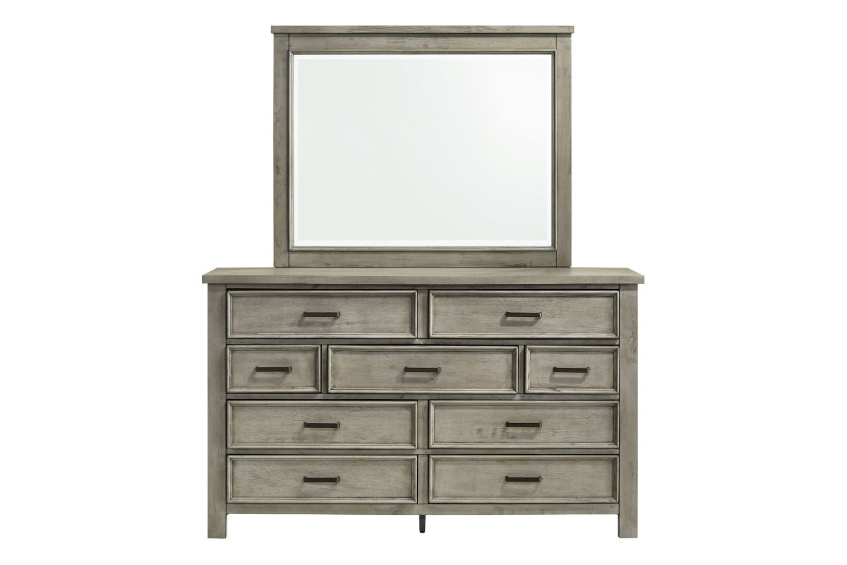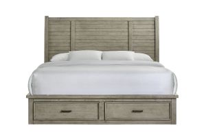 Dressed in a light Drift Grey finish, the handsome Yates bedroom collection is the perfect addition to any room. Featuring clean lines and ample storage space, this transitional set is sure to please. The bed is simplistically handsome with a sleigh wood panel headboard. Matching case pieces featuring spacious drawers complete the look of this modern farmhouse inspired collection.
