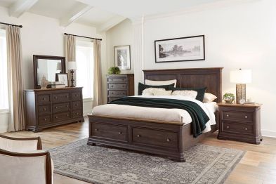Add stately, timeless appeal to your bedroom space with the Grand collection. Sturdily crafted from mixed hardwoods, it's finished in a rich dark brown with charmingly classic design details that are both handsome and versatile. The Grand storage bed features 2 drawer conveniently located in the footboard.