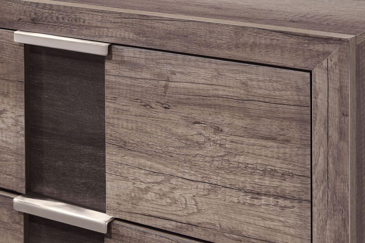The Zeller Bedroom Group will be the bright spot in every home. This transitional set utilizes the warmth and strength of wood veneers coupled with contemporary flair to create a stunning set. French Dovetail oversized drawers and Kenlin Drawer glides assure you of great storage, ease of use, and years of service. The LED lighting on the grand headboard lights the centerpiece of the room with a three position touch switch, located on each side of the headboard. The substantial mirror with a warm wooden frame high-lights the insets on each of the case pieces creating dimesion and depth. The pewter luster on the hardware looks right at home.