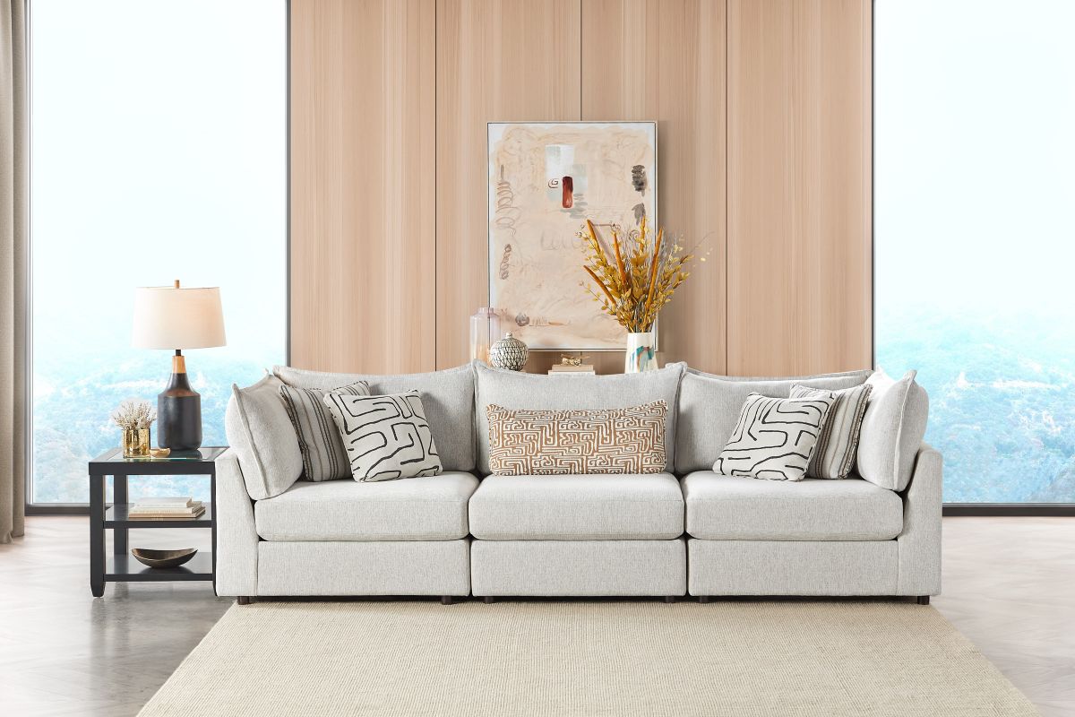 The Dream 3-Piece Corner Sofa brings together elevated style and modern functionality for a space that feels both polished and welcoming. Upholstered in a creamy performance fabric, it’s made to resist everyday wear while maintaining a soft, luxurious feel. Its clean-lined design features sleek track arms, deep seating, and a low-profile silhouette—perfect for modern living. Reversible seat and back cushions offer long-lasting comfort and versatility, while a sturdy frame ensures strength and durability. Finished with plush toss pillows for a designer touch, the Dream is your new go-to for lounging, entertaining, and everything in between.