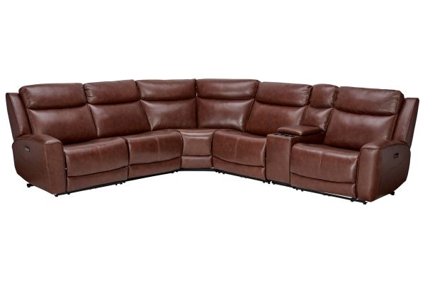 Experience true comfort and luxury with the Scorpio Power Reclining Sectional. Sumptuous brown leather upholstery, dual power reclining mechanisms and extended footrests come together to provide you with a cozy and luxurious place to relax. It also features a USB-C port, storage and cupholders in the console for the perfect blend of functionality and style.