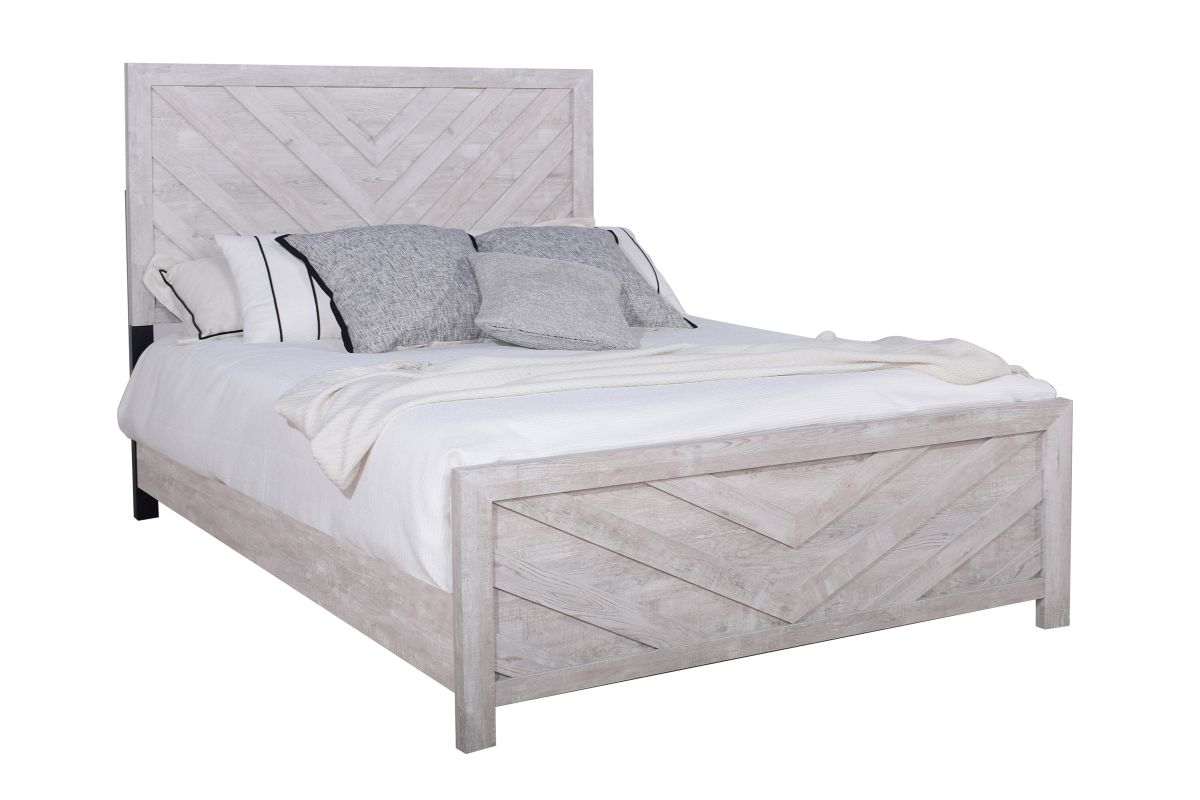 Introducing the Shevlin Bedroom Set, a comprehensive ensemble featuring a stylish bed, 6-drawer dresser, mirror, 5-drawer chest, and 2-drawer nightstand. Crafted with durable manufactured wood and finished with Eco-Friendly laminated surfaces, this set promises strength and stability. The light, airy Driftwood finish creates a relaxing atmosphere, perfect for unwinding after a busy day. Distinctive chevron pattern wood trim adorns the headboard and footboard, accentuated by dark iron finish drawer pulls, adding a touch of sophistication. Versatile in style, this transitional design seamlessly blends with various motifs, from coastal to contemporary, farmhouse to urban rustic. Plus, with time-tested drawer construction featuring English dovetail joinery and smooth metal center drawer glides, functionality meets elegance in this remarkable bedroom set.
