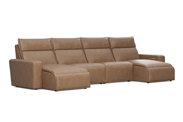 Discover the unlimited possibilities of the Modular Two dual power reclining sectional, thoughtfully designed with both comfort and flexibility in mind. Contemporary in style and upholstered in a plush suede-soft saddle colored microfiber, the sectional's tailored silhouette is enhanced by welted track arms and tufted back cushions for a look of refined elegance and serenity. Each piece is upholstered on all sides, offering endless opportunities for both reconfiguration as well as individual use. Dual power reclining functionality allows for easy adjustment in the headrest and footrest, providing the ultimate in personalized comfort. Select a preconfigured design or visit a showroom to learn about individual components and create the modular sectional perfect for your space and style.