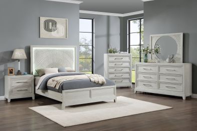 Transform your bedroom into a sanctuary of elegance and modern innovation with our Meredith Bedroom Collection, featuring a LED Lighted Headboard adorned with intricate wood carvings. Experience the perfect union of style, comfort, and technology for a truly luxurious sleeping space.