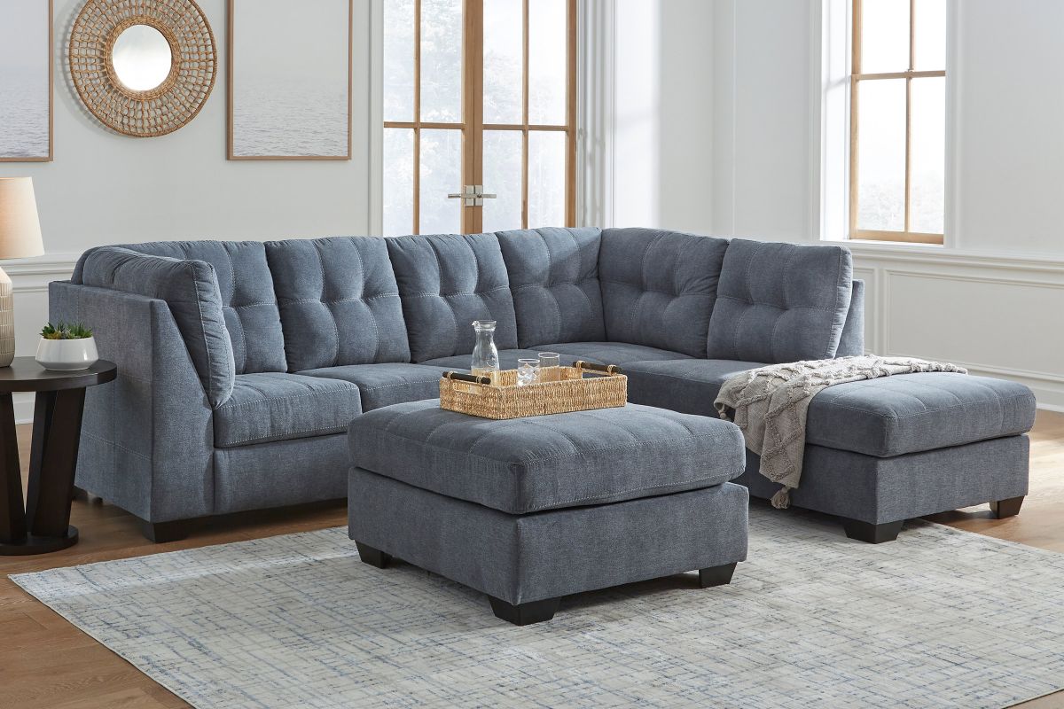 This sectional with chaise takes a homey approach to high style. Its denim-inspired fabric has classic versatility, while a contemporary silhouette and stitched details keep the look totally on trend. And you can count on comfort—the chaise invites you to kick back and stretch out.
