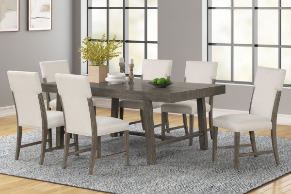 The Declan 7-Piece Dining Set makes rustic entertaining easy. Its rustic grey finish and earthy wood grain detail create an organic look. Make room for more family and friends with its 18" leaf, extending this table to 84" long. The versatile design of the Declan chair makes it suitable for various dining room styles. Whether your decor is traditional, modern, or somewhere in between, this chair adds a touch of elegance to any space.
