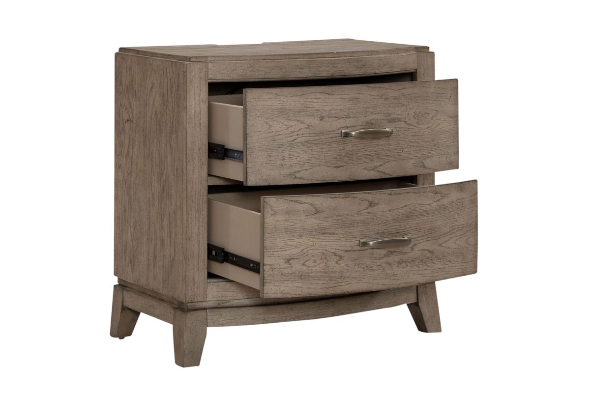 Create a serene and sophisticated retreat with this beautifully Townsend crafted bedroom set, designed with graceful curves, a soothing burnished beige finish, and thoughtful storage solutions. This set combines luxurious style with functional details, making it an ideal centerpiece for any bedroom.
