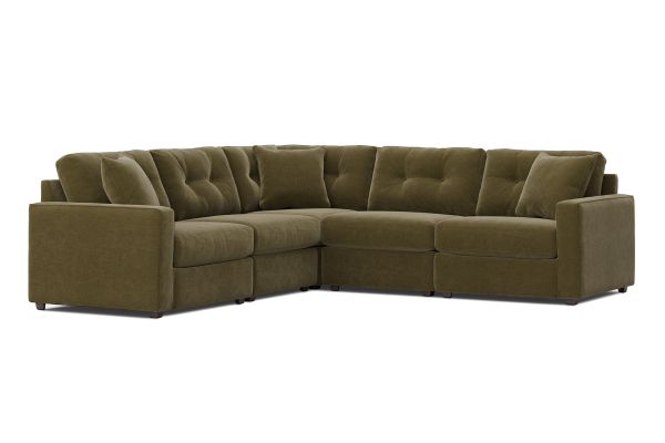 Discover the limitless possibilities of the Modular One sectional, thoughtfully designed with comfort and flexibility in mind. This customizable seating solution features individual pieces that can be reconfigured to the shape you need. Game days, movie nights, sleepovers, and everyday relaxation are all better when the seating arrangement you want is always right at your fingertips. This soft, green chenille includes Repreve yarn, made with recycled plastic bottles. The open seating includes a chaise and has welted track arms, top-stitched seat cushions and button-tufted back cushions for an elegant silhouette.