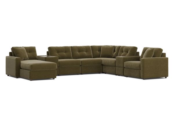 ModularOne Sectional Moss 8-Piece with E-Console & Left Arm Facing Chaise