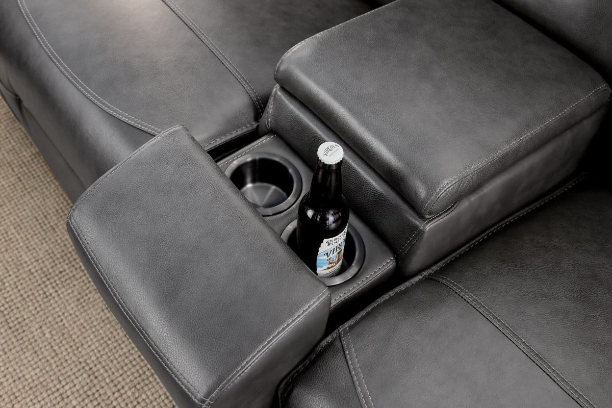 Introducing the Cade collection, crafted for ultimate comfort and convenience. Upholstered in top grain leather everywhere the body touches, this collection offers premium softness and durability. Available in grey or brown, this versatile collection adds modern sophistication to any living room. Each piece is equipped with dual power reclining, allowing you to easily adjust both the headrest and footrest for personalized relaxation. The loveseat features hidden pull-out cup holders and a storage console, keeping your essentials neatly tucked away. For added convenience, all reclining pieces include USB and USB-C outlets, making it easy to charge your devices while you unwind. With its sleek design, high-quality leather, and advanced functionality, the Cade is perfect for those seeking both style and comfort in their living space.