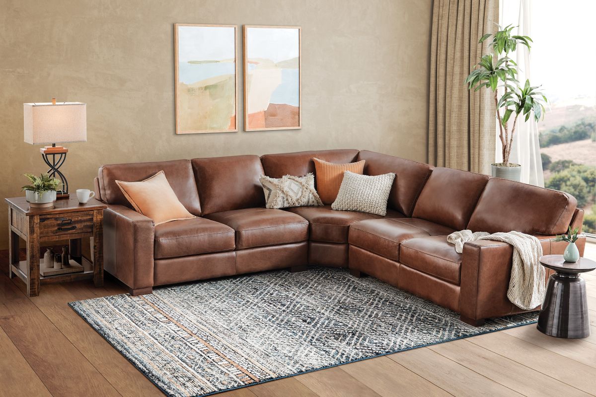 Crafted with top-grain chestnut leather, the Miller Collection brings elevated comfort and refined style to your living space. Every piece is designed with deep, plush cushions that invite relaxation, paired with bold block feet and wide track arms that give the collection its signature, structured look. Whether you're styling a full room or selecting a standout piece, the Miller Collection delivers a perfect balance of warmth, durability, and modern sophistication. From spacious sectionals to classic sofas and chairs, each piece is a testament to thoughtful craftsmanship—made to age beautifully and remain a focal point in your home for years to come.