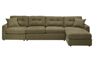 Discover the limitless possibilities of the ModularOne sectional, thoughtfully designed with comfort and flexibility in mind. This customizable seating solution features individual pieces that can be reconfigured to the shape you need. Game days, movie nights, sleepovers, and everyday relaxation are all better when the seating arrangement you want is always right at your fingertips. This soft, beige chenille includes Repreve yarn, made with recycled plastic bottles. The dual seating area has welted track arms, top-stitched seat cushions and button-tufted back cushions for an elegant silhouette. The armless loveseat component features a full size 4" innerspring mattress, perfect for over night guests and easily hidden away for gameday.