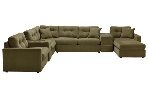 ModularOne Sectional Moss 7-Piece Sectional with Sleeper + E-Console + Right Arm Facing Chaise