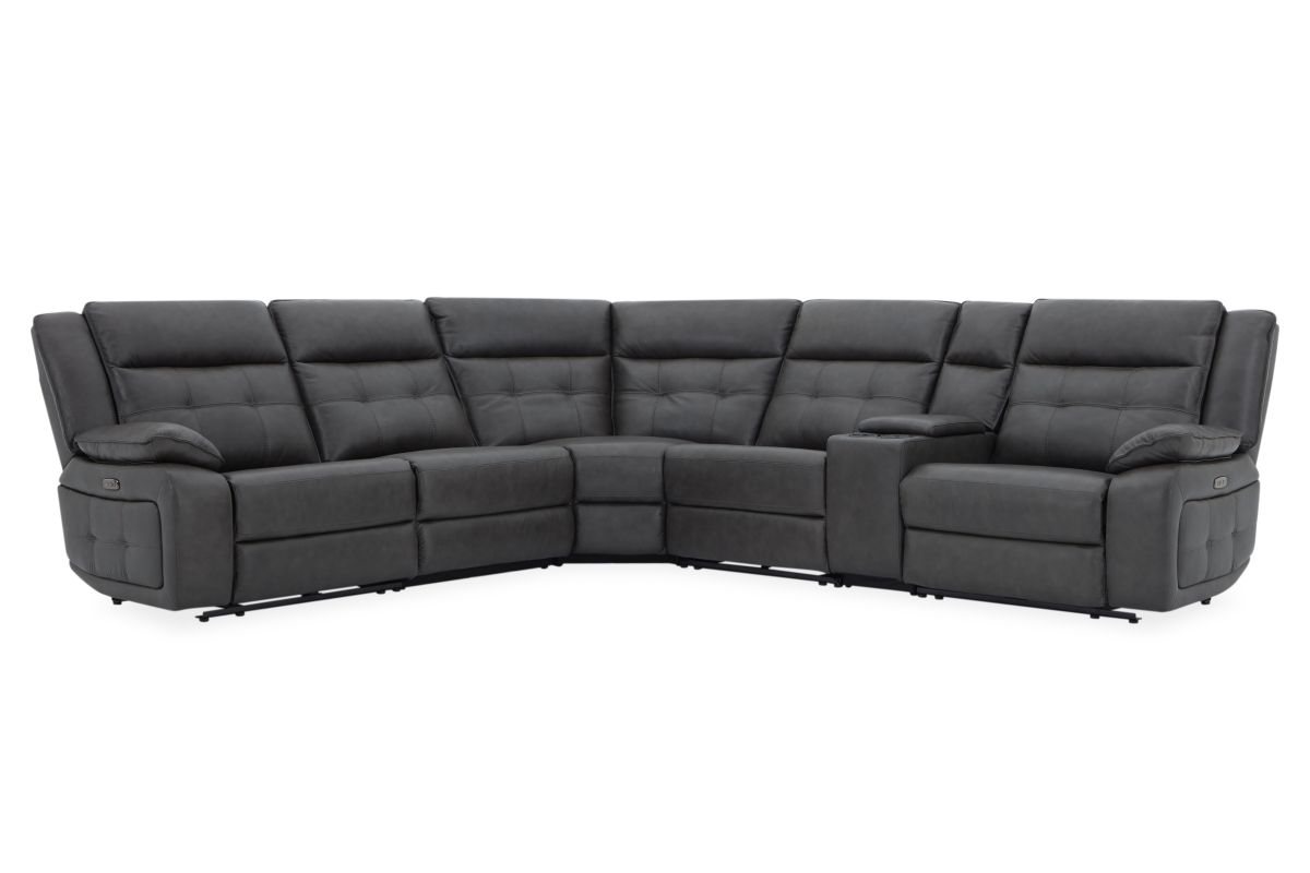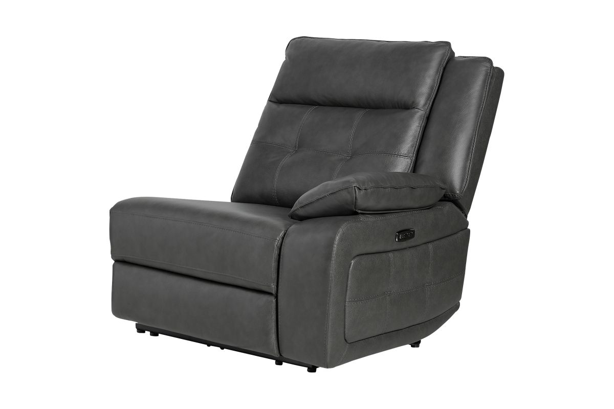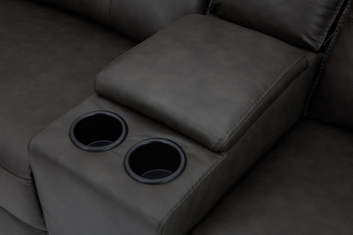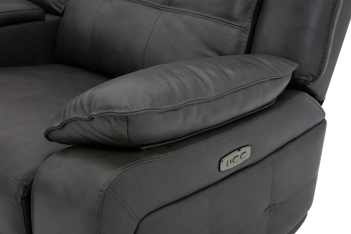 Weclome the Orion collection – the perfect fusion of sleek design, luxurious comfort, and modern functionality. Draped in sumptuous grey leather, this sectional is crafted with quality tailoring that adds an air of sophistication to any living space. The button tuffted quilting on the back cushions provide both comfort and an eye-catching design element, offering plush support with a touch of contemporary elegance. Designed for relaxation, this collection features pillow top armrests that cradle you in comfort while reclining. The storage console conveniently provides easy access to your essentials with cup holders and storage space, making it perfect for movie nights or casual lounging. For added convenience, the Orion is equipped with USB-C and USB charging ports, allowing you to easily charge your devices while you relax. Whether you're unwinding after a long day or hosting guests, the Orion combines style and practicality with its sleek design and modern features.