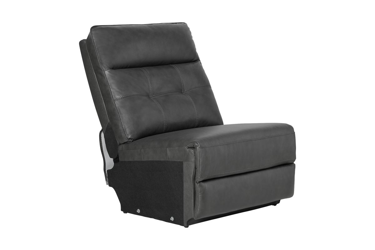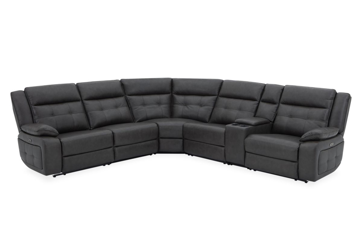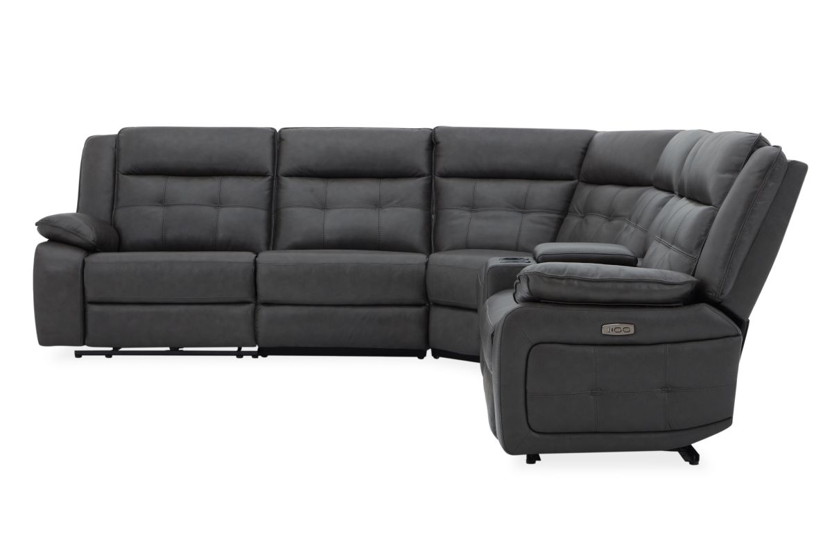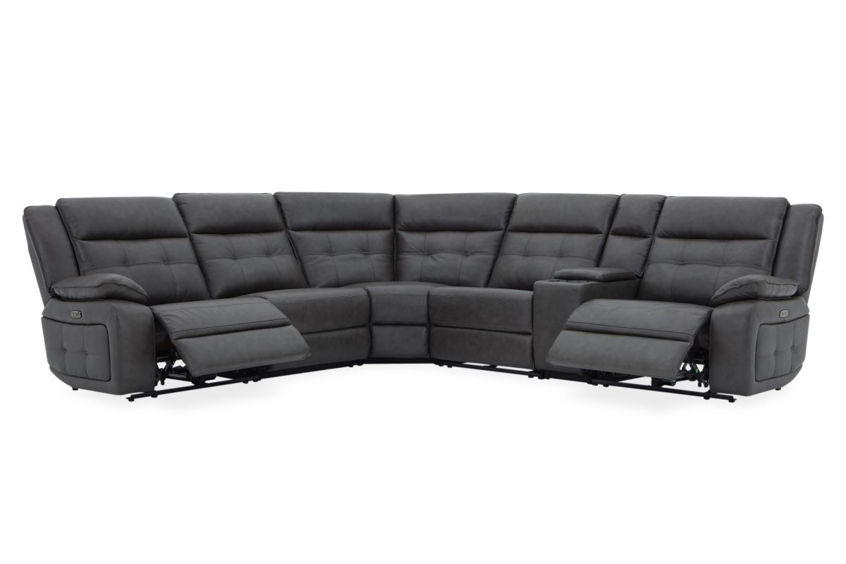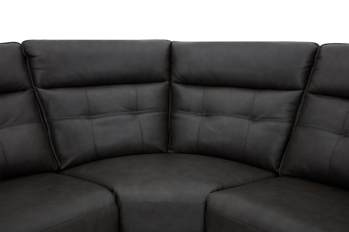 Weclome the Orion collection – the perfect fusion of sleek design, luxurious comfort, and modern functionality. Draped in sumptuous grey leather, this sectional is crafted with quality tailoring that adds an air of sophistication to any living space. The button tuffted quilting on the back cushions provide both comfort and an eye-catching design element, offering plush support with a touch of contemporary elegance. Designed for relaxation, this collection features pillow top armrests that cradle you in comfort while reclining. The storage console conveniently provides easy access to your essentials with cup holders and storage space, making it perfect for movie nights or casual lounging. For added convenience, the Orion is equipped with USB-C and USB charging ports, allowing you to easily charge your devices while you relax. Whether you're unwinding after a long day or hosting guests, the Orion combines style and practicality with its sleek design and modern features.