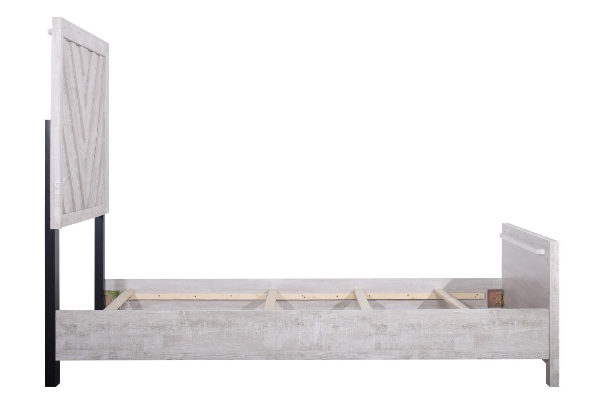 Introducing the Shevlin Bedroom Set, a comprehensive ensemble featuring a stylish bed, 6-drawer dresser, mirror, 5-drawer chest, and 2-drawer nightstand. Crafted with durable manufactured wood and finished with Eco-Friendly laminated surfaces, this set promises strength and stability. The light, airy Driftwood finish creates a relaxing atmosphere, perfect for unwinding after a busy day. Distinctive chevron pattern wood trim adorns the headboard and footboard, accentuated by dark iron finish drawer pulls, adding a touch of sophistication. Versatile in style, this transitional design seamlessly blends with various motifs, from coastal to contemporary, farmhouse to urban rustic. Plus, with time-tested drawer construction featuring English dovetail joinery and smooth metal center drawer glides, functionality meets elegance in this remarkable bedroom set.