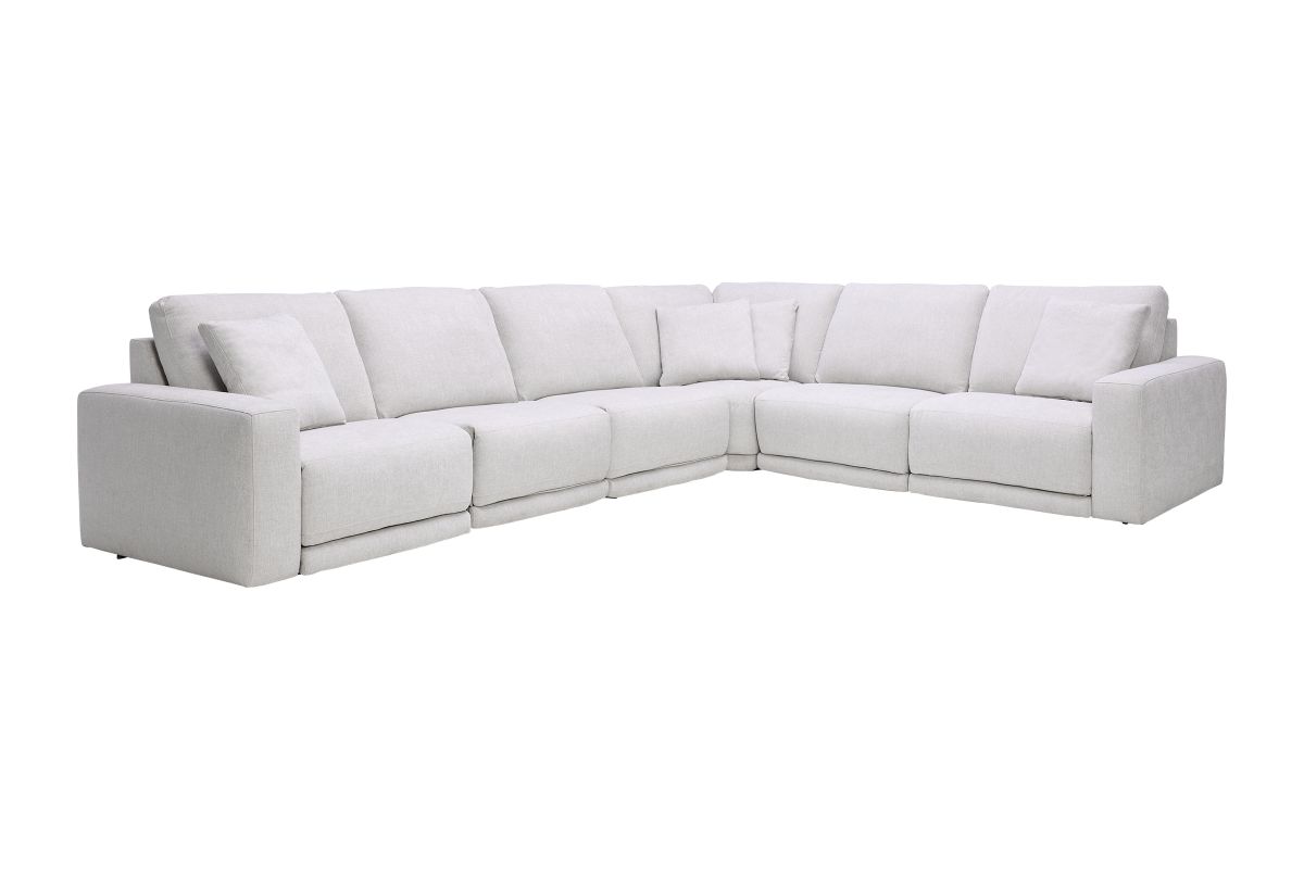 Upgrade your living room with the Lux collection, expertly blending modern style with hidden functionality. Featuring sleek track arms, clean lines, and matching toss pillows, the Lux brings sophistication to your space while offering unparalleled comfort. Disguised power reclining buttons are seamlessly integrated into the design, maintaining the sleek, stationary appearance. With a zero-wall mechanism, this sectional reclines fully while requiring minimal wall clearance, maximizing your room layout options. The Eco Feather-filled loose back cushions are zippered to ensure perfect positioning, providing consistent support and tailored seating comfort. Each cushion is designed to cradle you in luxury, making this sectional ideal for both relaxing and entertaining. Whether you're lounging solo or hosting guests, this sectional combines cutting-edge design with functional elegance to create the ultimate centerpiece for your home.