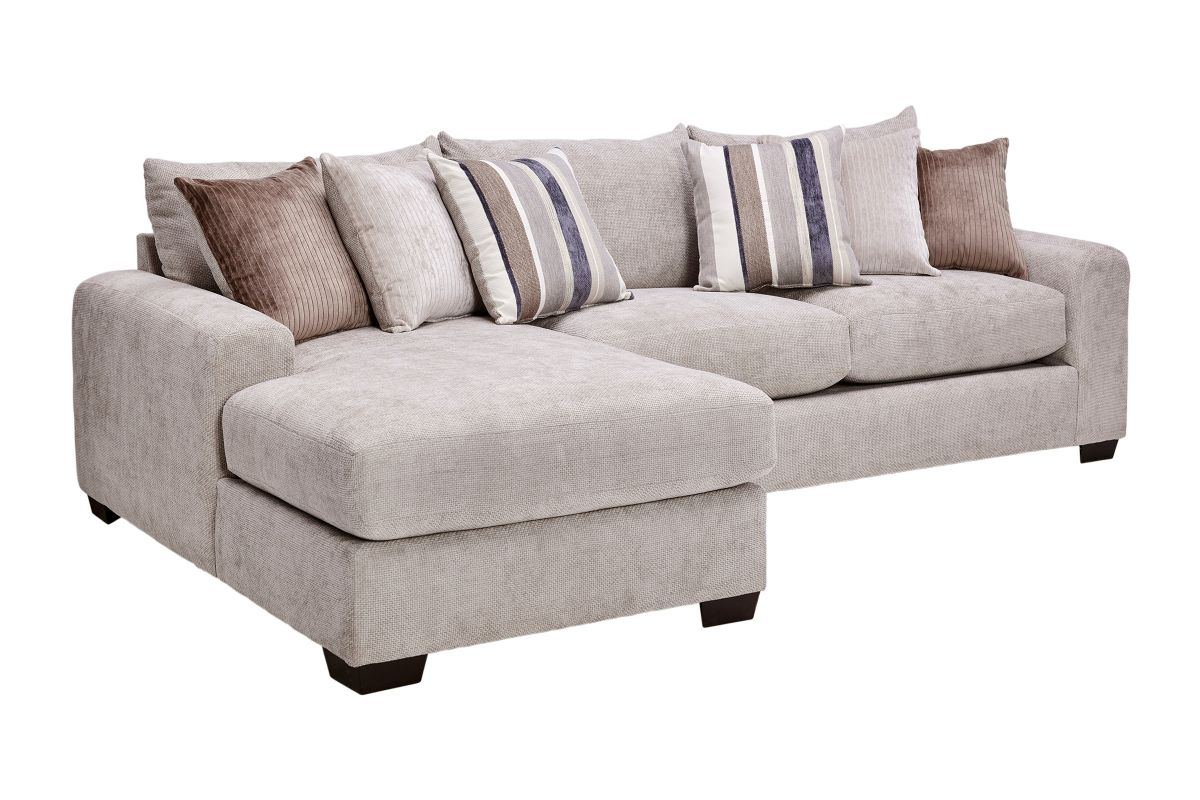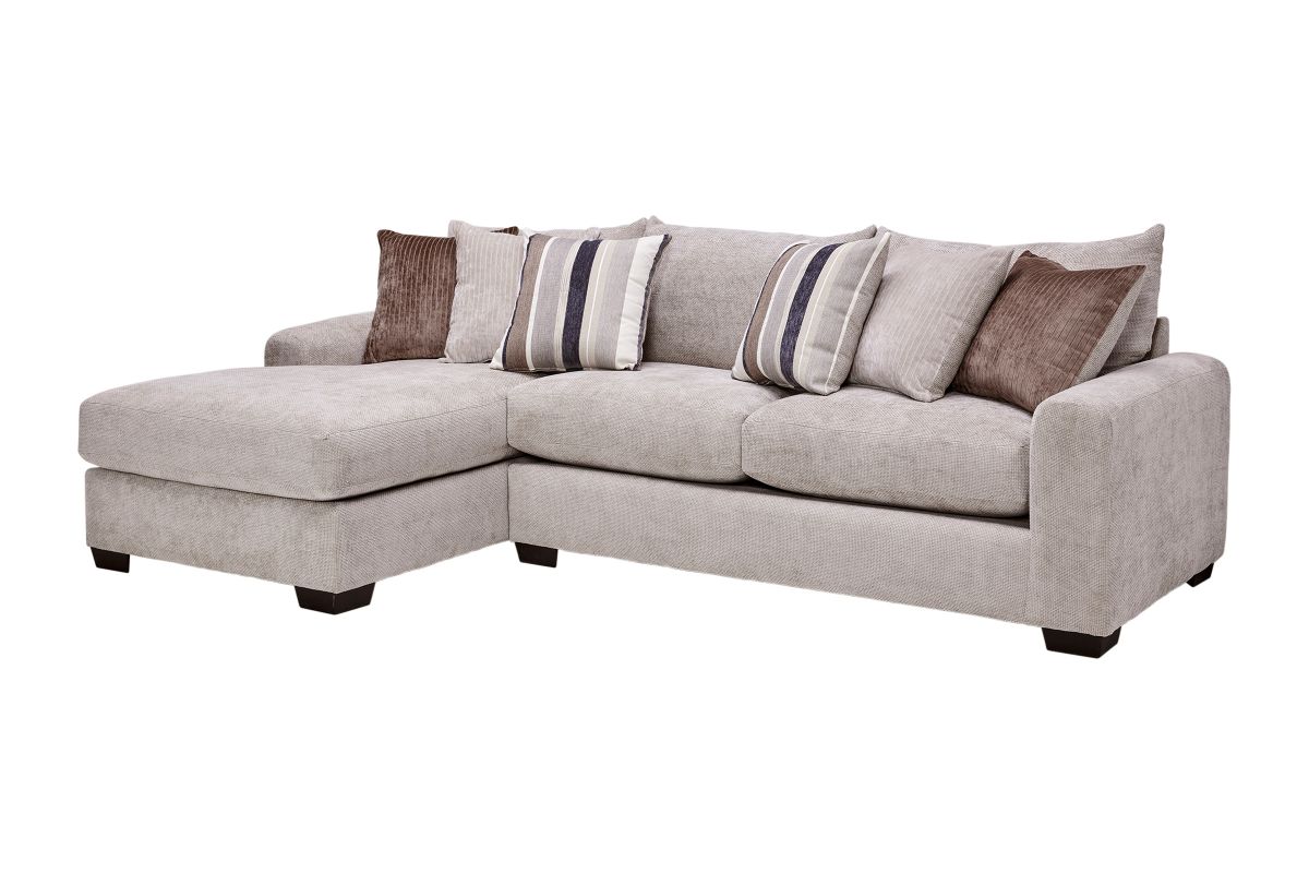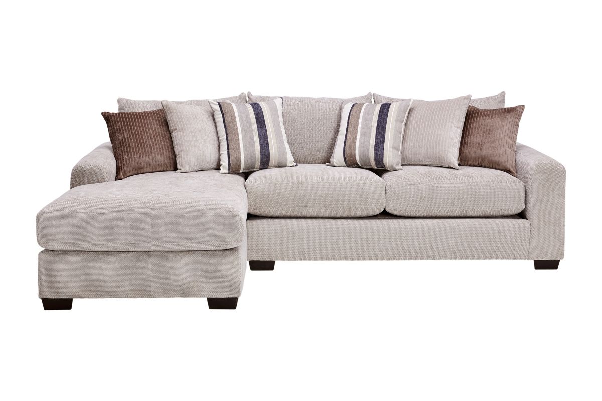 Create the ultimate gathering space with the spacious and stylish Cameron sectional. Designed for modern living, it features an inviting L-shaped configuration perfect for family lounging, entertaining guests, or stretching out in comfort. The plush, high-resiliency cushions are wrapped in a soft, textured fabric that delivers both luxury and durability. The clean lines and neutral tones allow this sectional to seamlessly complement any décor, while the included mix of accent pillows adds warmth and style. Wide, padded armrests and deep seats ensure unmatched relaxation. Whether you’re hosting movie nights or enjoying quiet afternoons, the Cameron sectional offers plenty of room to gather, unwind, and enjoy life’s moments.
