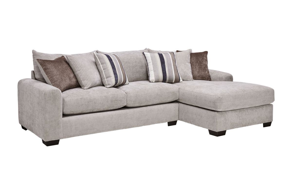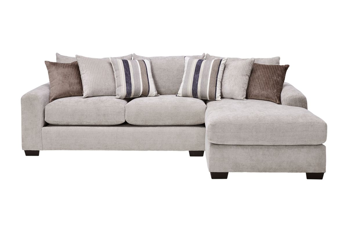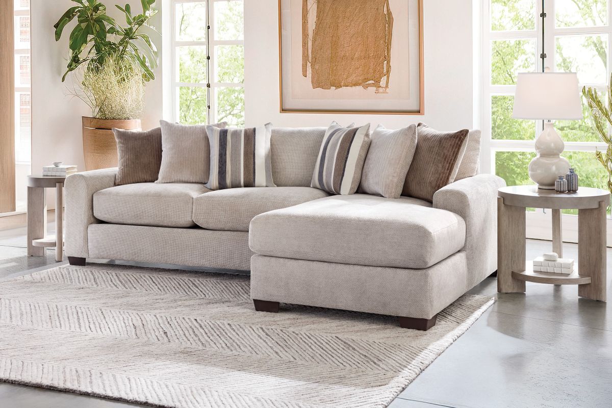 Create the ultimate gathering space with the spacious and stylish Cameron sectional. Designed for modern living, it features an inviting L-shaped configuration perfect for family lounging, entertaining guests, or stretching out in comfort. The plush, high-resiliency cushions are wrapped in a soft, textured fabric that delivers both luxury and durability. The clean lines and neutral tones allow this sectional to seamlessly complement any décor, while the included mix of accent pillows adds warmth and style. Wide, padded armrests and deep seats ensure unmatched relaxation. Whether you’re hosting movie nights or enjoying quiet afternoons, the Cameron sectional offers plenty of room to gather, unwind, and enjoy life’s moments.