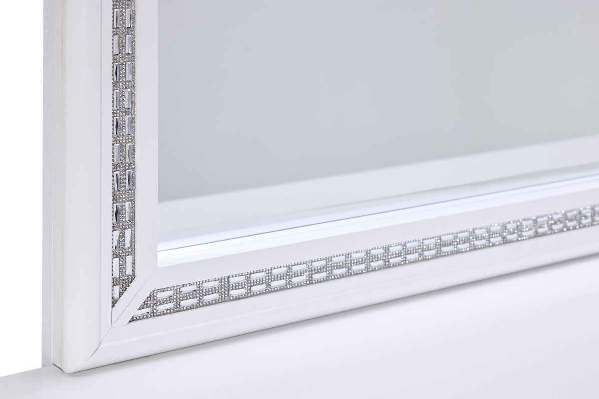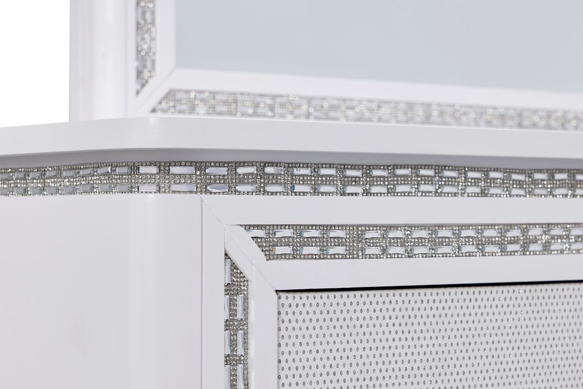 - The white finish creates a neutral backdrop for the radiant crystal-like touches that adorn each room