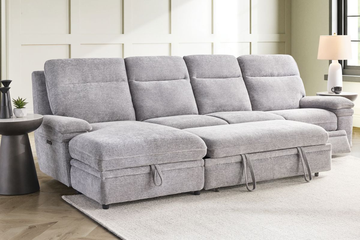 Redefine relaxation with the Colt Sleeper Sectional, the ultimate fusion of plush comfort, tech-savvy features, and versatile function. Upholstered in a soft, durable fabric, this sectional is designed to elevate your living space while keeping convenience at your fingertips. Stretch out on the roomy chaise—complete with hidden storage—or transform the sectional into a pop-up sleeper for overnight guests. Dual power recliners allow you to kick back effortlessly with the touch of a button, while the built-in console includes USB ports, cupholders, and a hidden compartment to keep essentials tucked away but always within reach. Whether you're hosting movie night, catching a nap, or need extra sleeping space, the Colt delivers big on style, comfort, and smart design.