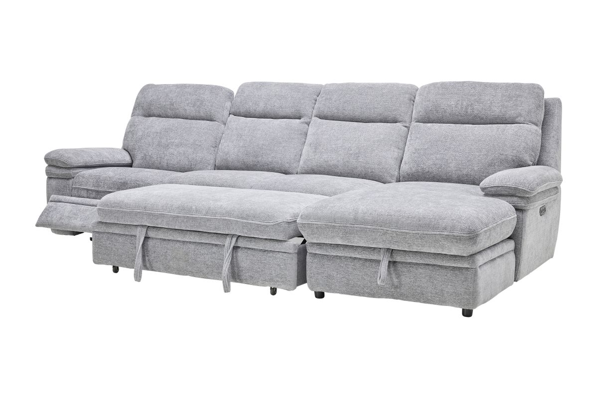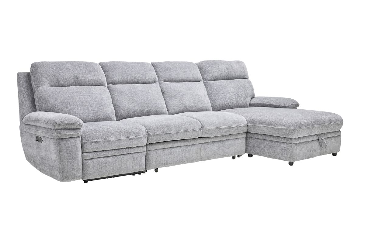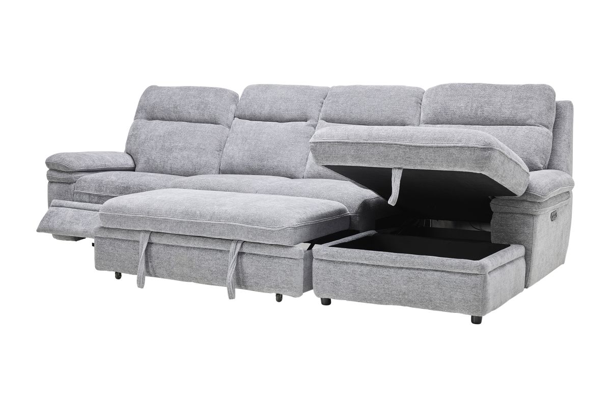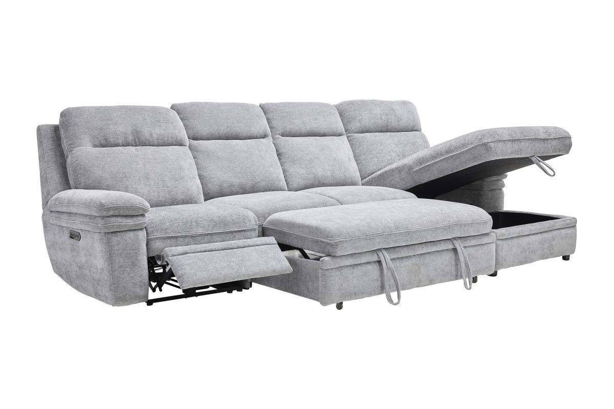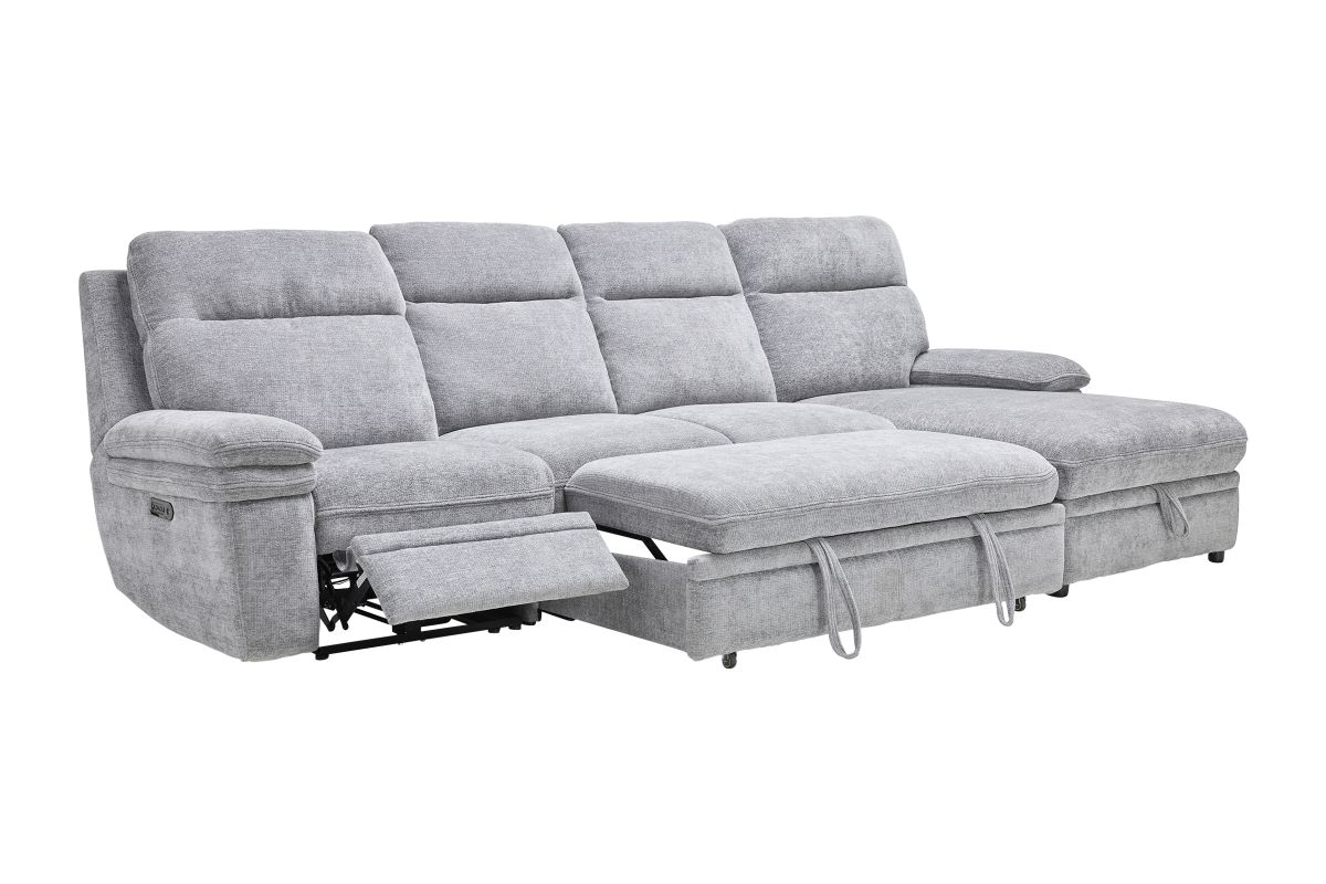 Redefine relaxation with the Colt Sleeper Sectional, the ultimate fusion of plush comfort, tech-savvy features, and versatile function. Upholstered in a soft, durable fabric, this sectional is designed to elevate your living space while keeping convenience at your fingertips. Stretch out on the roomy chaise—complete with hidden storage—or transform the sectional into a pop-up sleeper for overnight guests. Dual power recliners allow you to kick back effortlessly with the touch of a button, while the built-in console includes USB ports, cupholders, and a hidden compartment to keep essentials tucked away but always within reach. Whether you're hosting movie night, catching a nap, or need extra sleeping space, the Colt delivers big on style, comfort, and smart design. * Includes: Left Arm Facing Recliner + Armless Sleeper +Right Arm Facing Chaise*