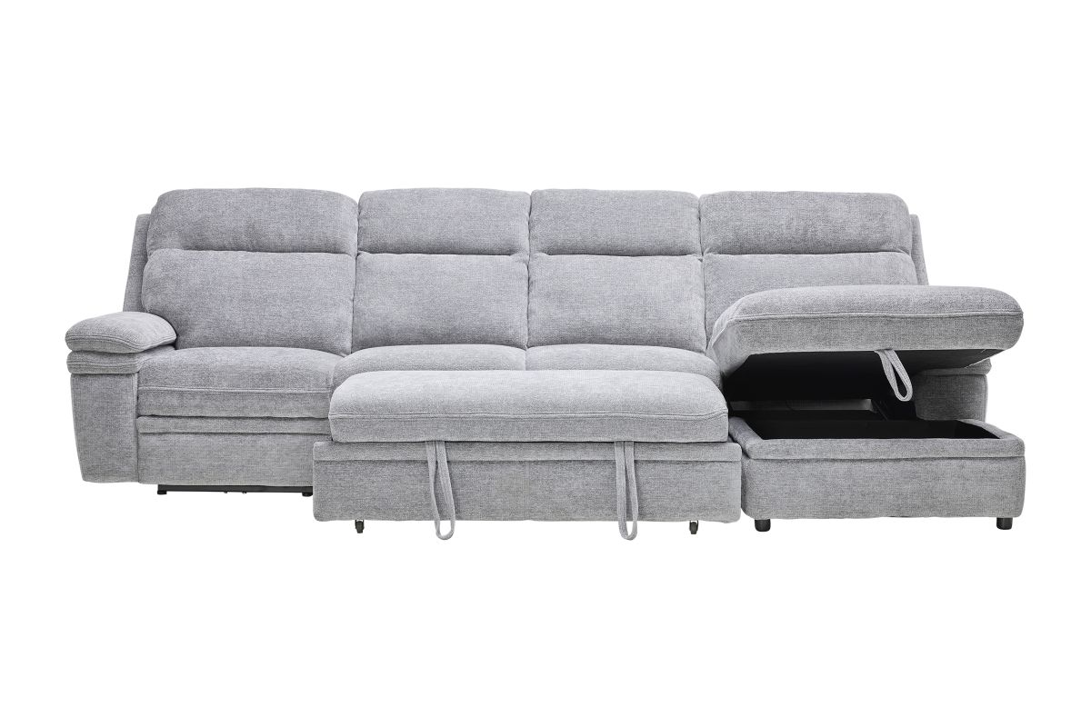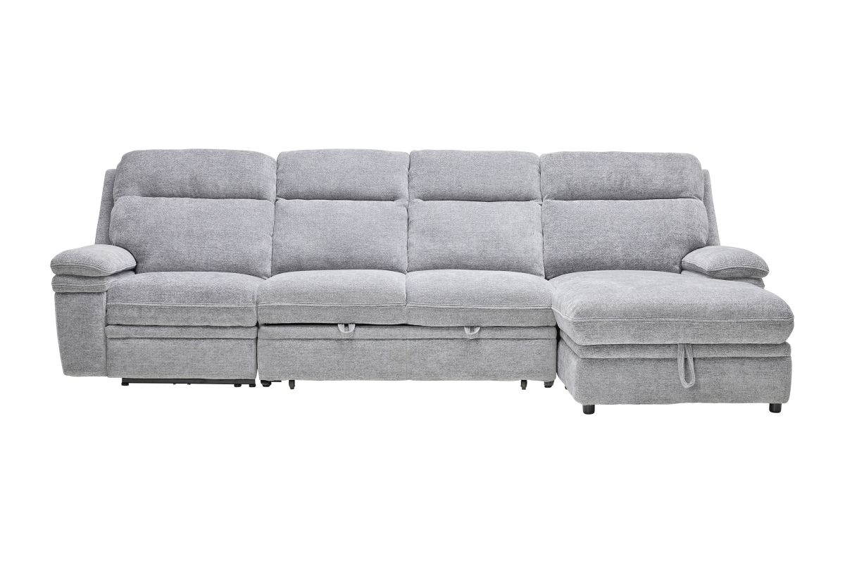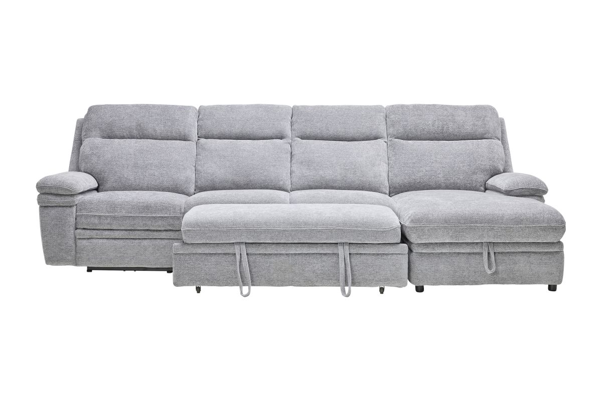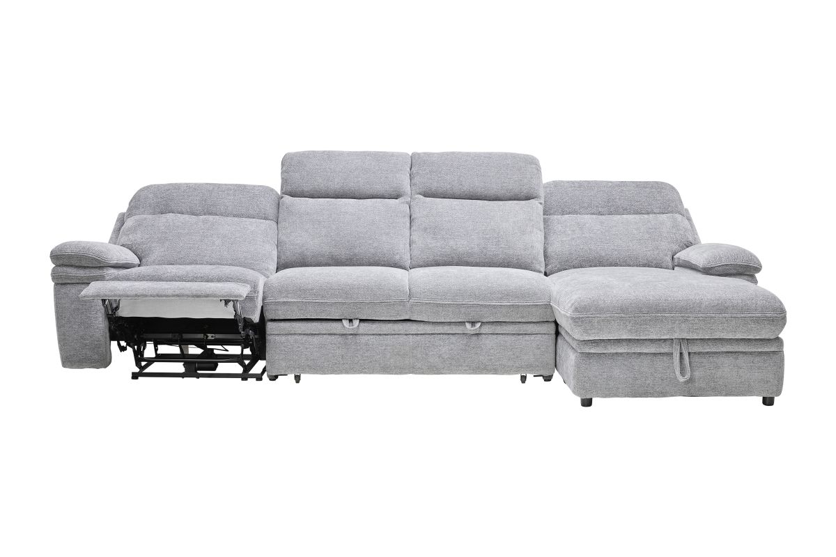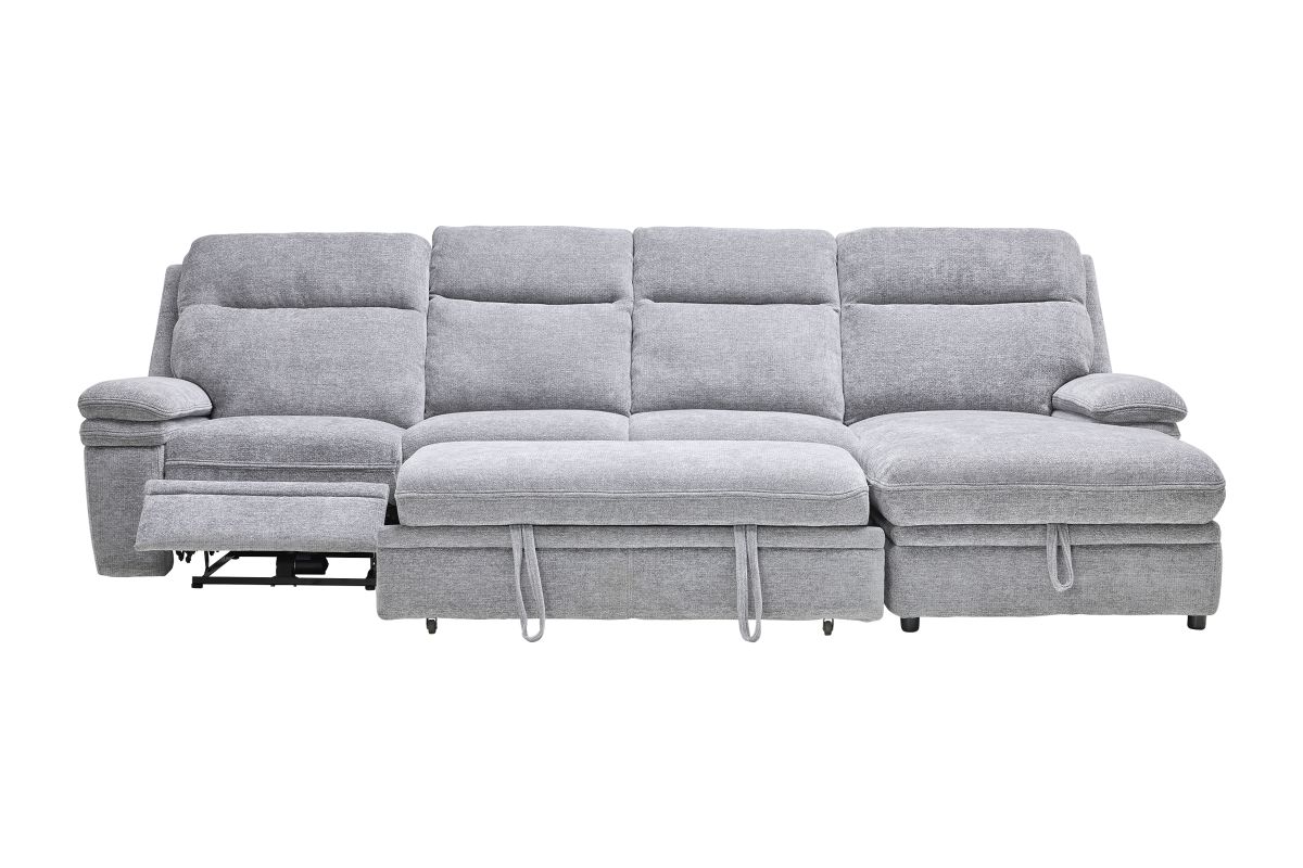 Redefine relaxation with the Colt Sleeper Sectional, the ultimate fusion of plush comfort, tech-savvy features, and versatile function. Upholstered in a soft, durable fabric, this sectional is designed to elevate your living space while keeping convenience at your fingertips. Stretch out on the roomy chaise—complete with hidden storage—or transform the sectional into a pop-up sleeper for overnight guests. Dual power recliners allow you to kick back effortlessly with the touch of a button, while the built-in console includes USB ports, cupholders, and a hidden compartment to keep essentials tucked away but always within reach. Whether you're hosting movie night, catching a nap, or need extra sleeping space, the Colt delivers big on style, comfort, and smart design. * Includes: Left Arm Facing Recliner + Armless Sleeper +Right Arm Facing Chaise*