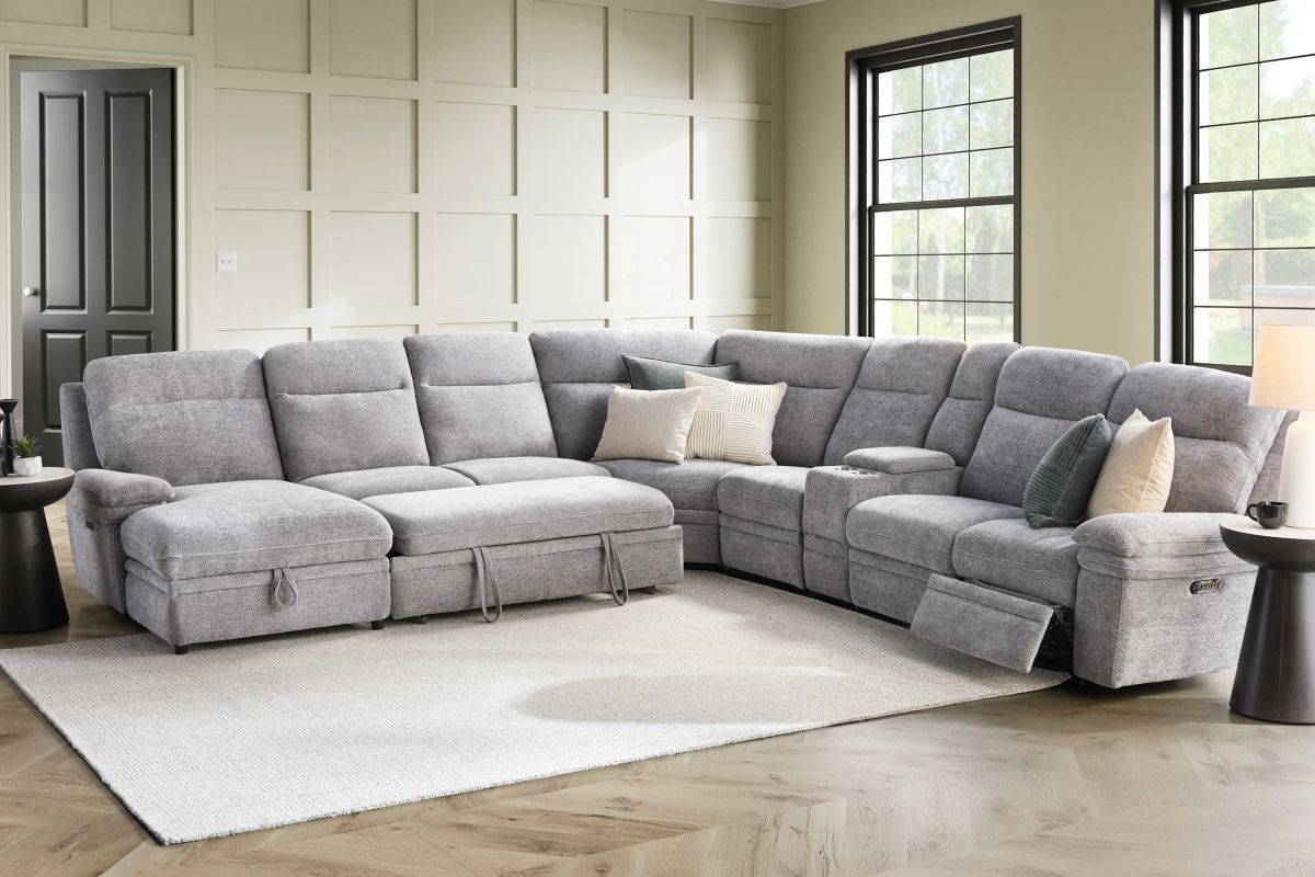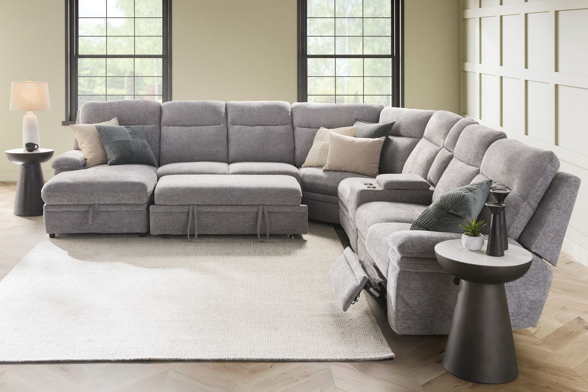 Redefine relaxation with the Colt Sleeper Sectional, the ultimate fusion of plush comfort, tech-savvy features, and versatile function. Upholstered in a soft, durable fabric, this sectional is designed to elevate your living space while keeping convenience at your fingertips. Stretch out on the roomy chaise—complete with hidden storage—or transform the sectional into a pop-up sleeper for overnight guests. Dual power recliners allow you to kick back effortlessly with the touch of a button, while the built-in console includes USB ports, cupholders, and a hidden compartment to keep essentials tucked away but always within reach. Whether you're hosting movie night, catching a nap, or need extra sleeping space, the Colt delivers big on style, comfort, and smart design.