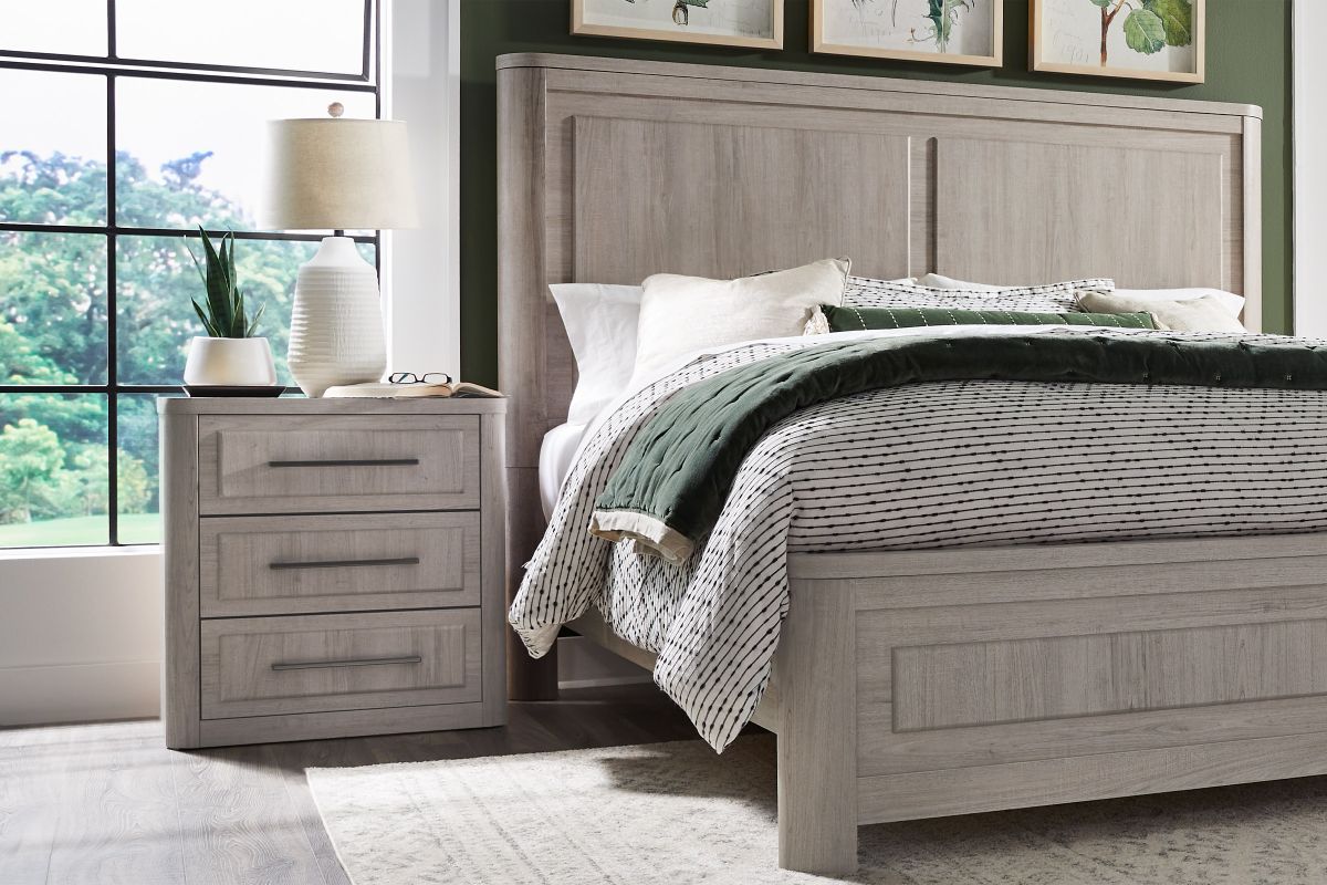 The Easton Bedroom set showcases a clean, modern aesthetic with natural tones and durable materials, The natural white finish enhances the grain of the wood, creating a soft and airy feel perfect for brightening up any bedroom.