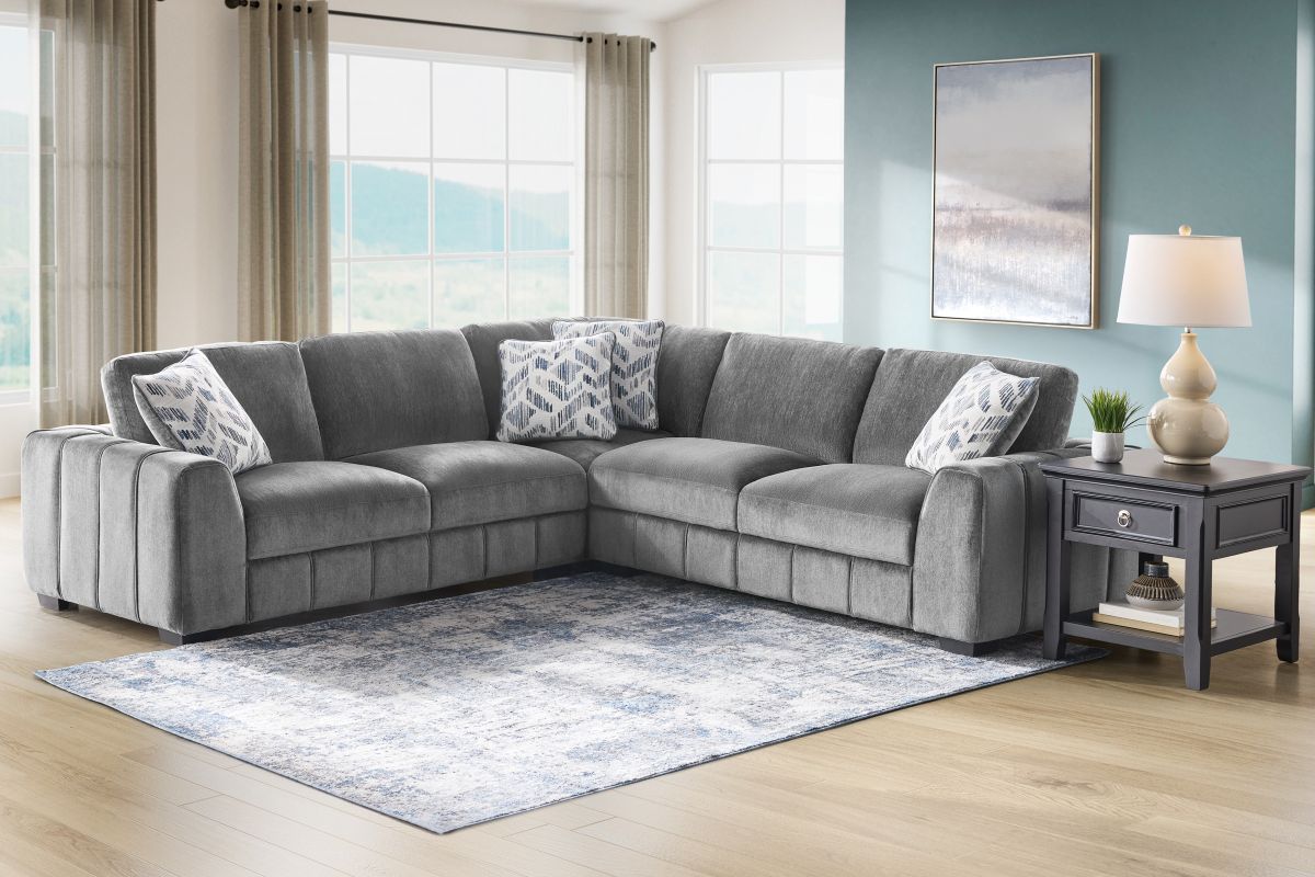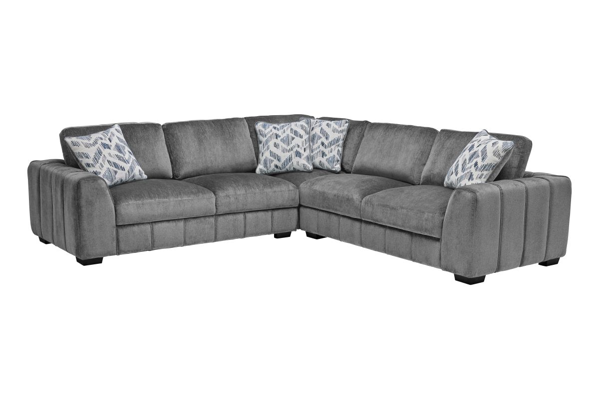 Bring stylish functionality into your living space with the Overnight sectional and coordinating swivel chair. The sectional, available in both blue and grey fabric, offers a versatile design perfect for lounging or accommodating guests. Plush cushions and vertical channel tufting add a sophisticated touch while ensuring luxurious comfort. Whether you're hosting guests or unwinding after a long day, this sectional set combines modern design with everyday practicality.