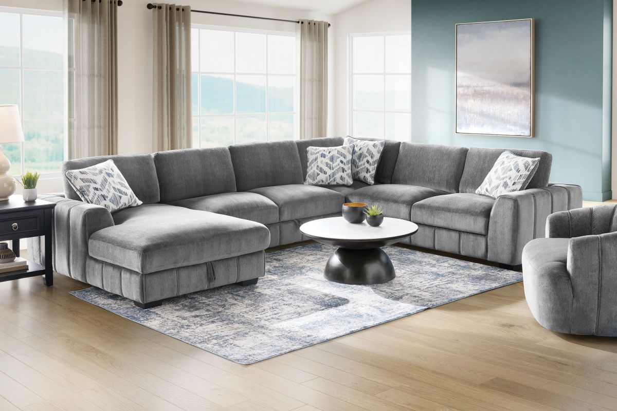 Includes: Left Arm Storage Chaise + Wedge + Armless Sleeper + Right Arm Loveseat