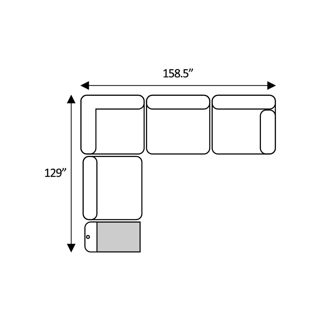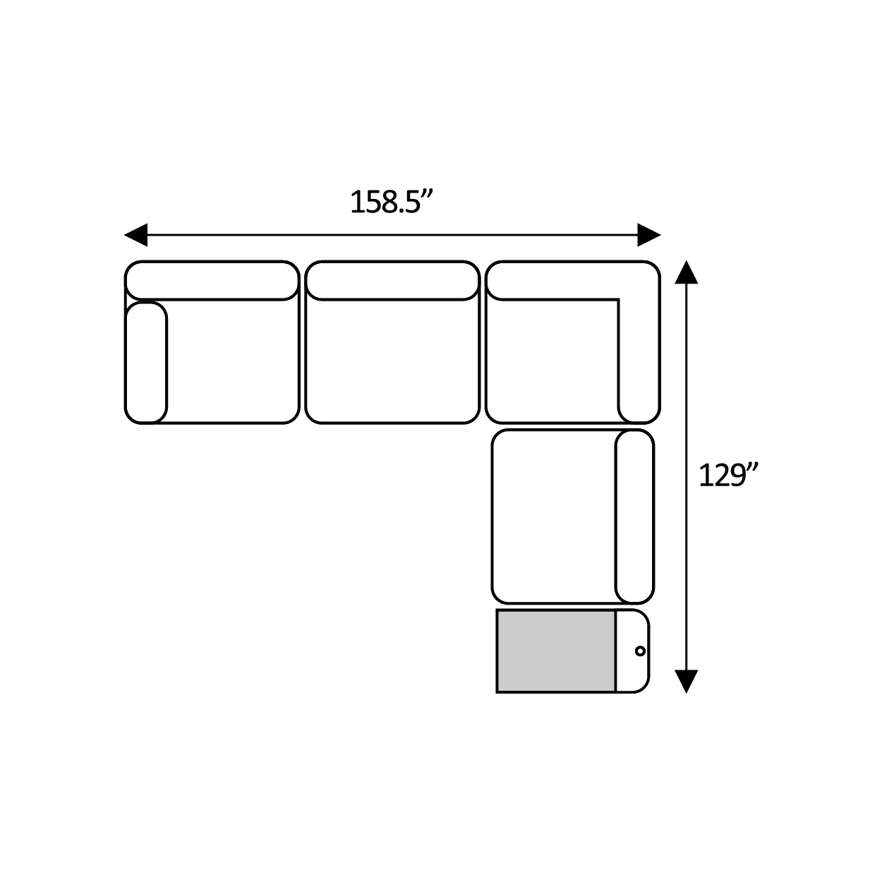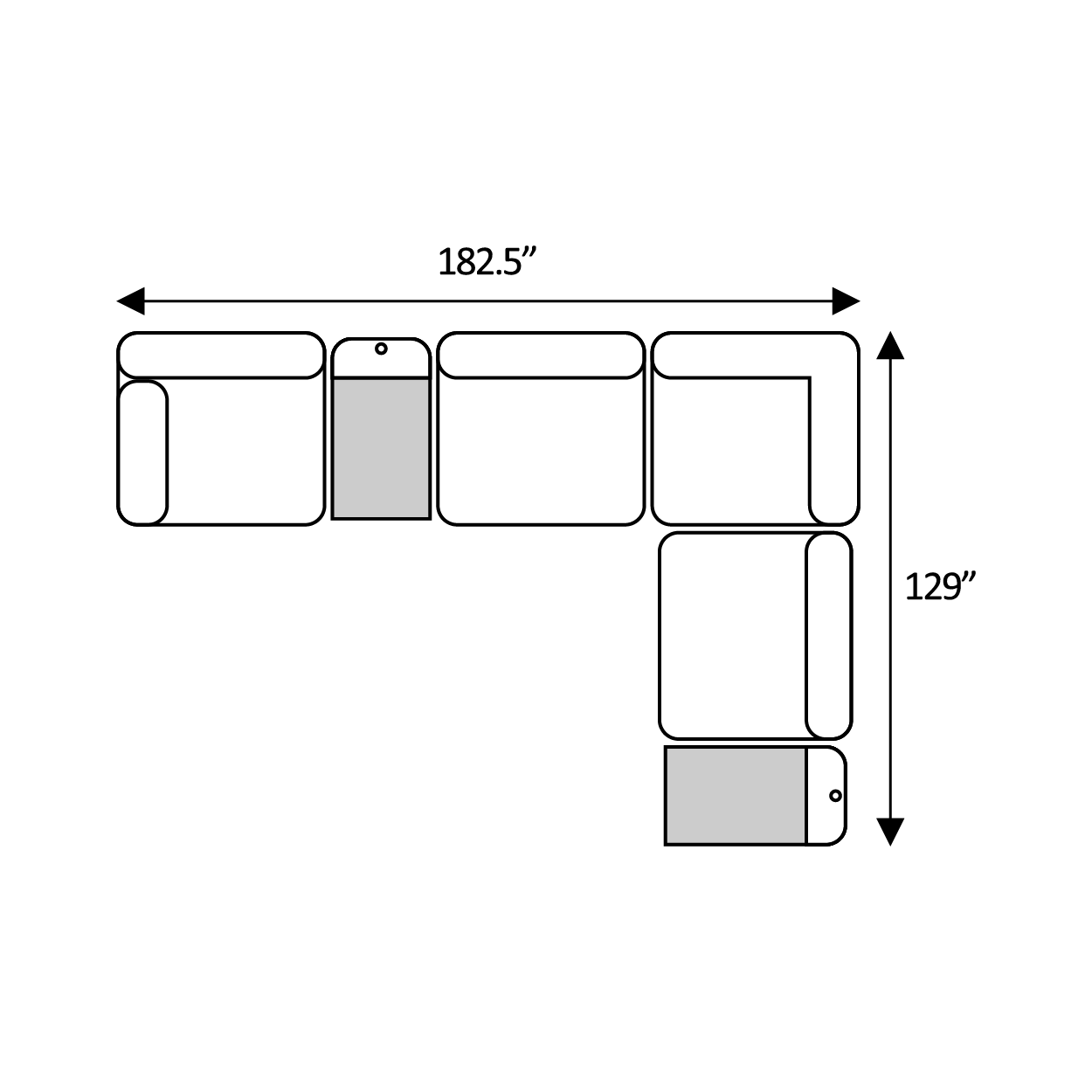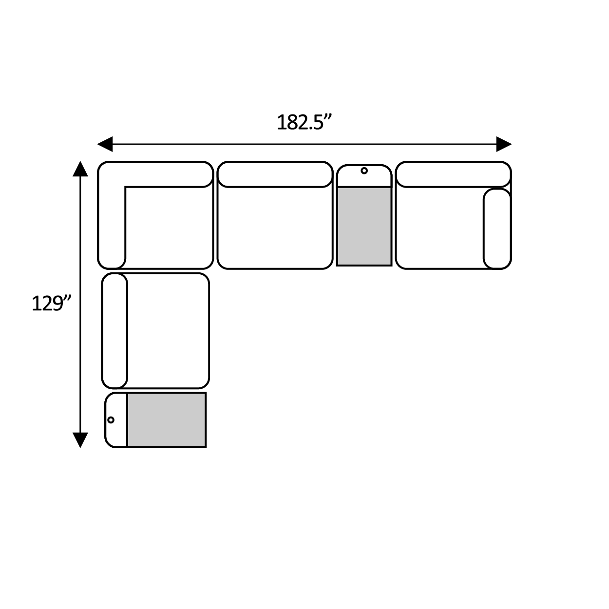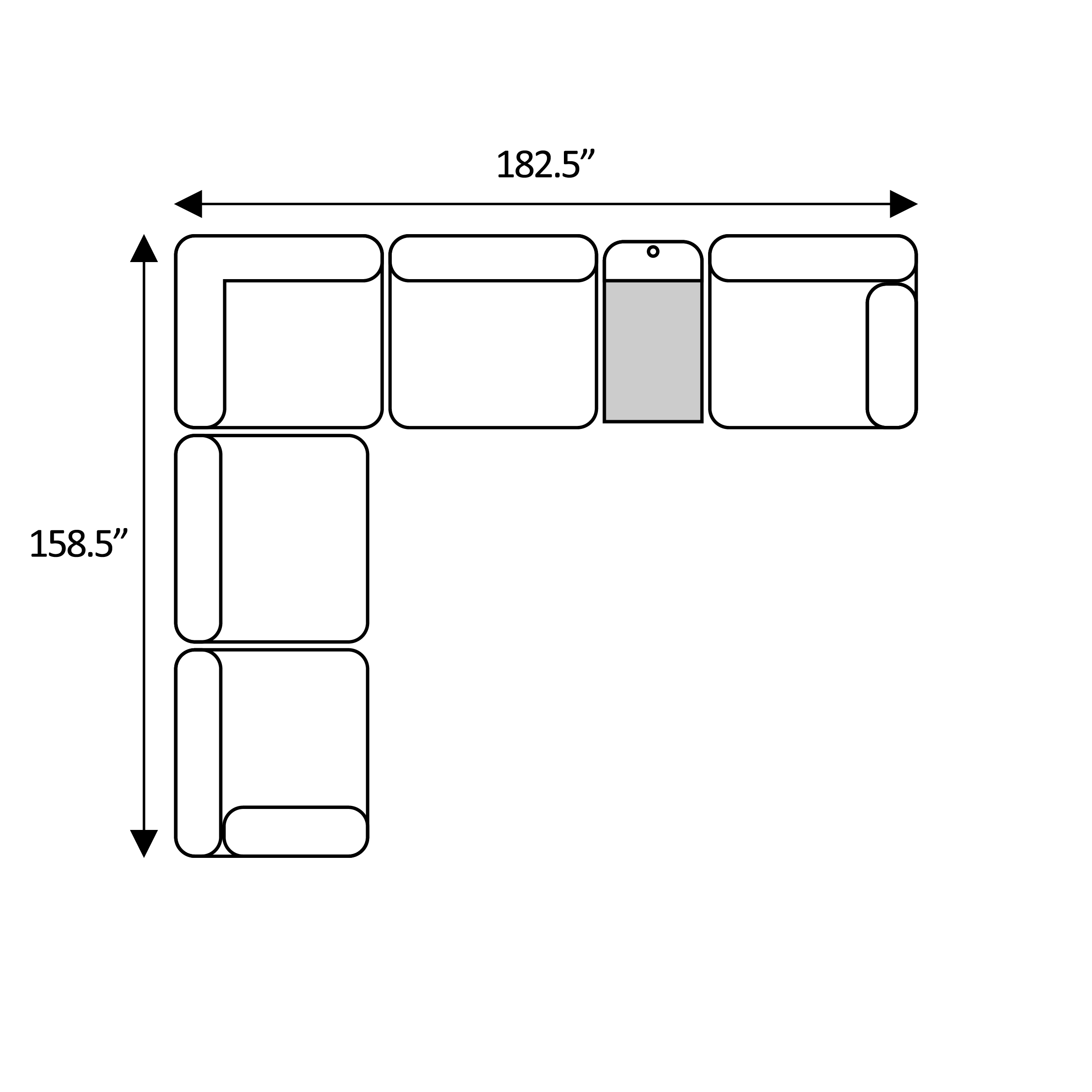 Includes Left Arm Facing Chair + Media Console + Armless Chair + Media Console + Right Arm Facing Chair