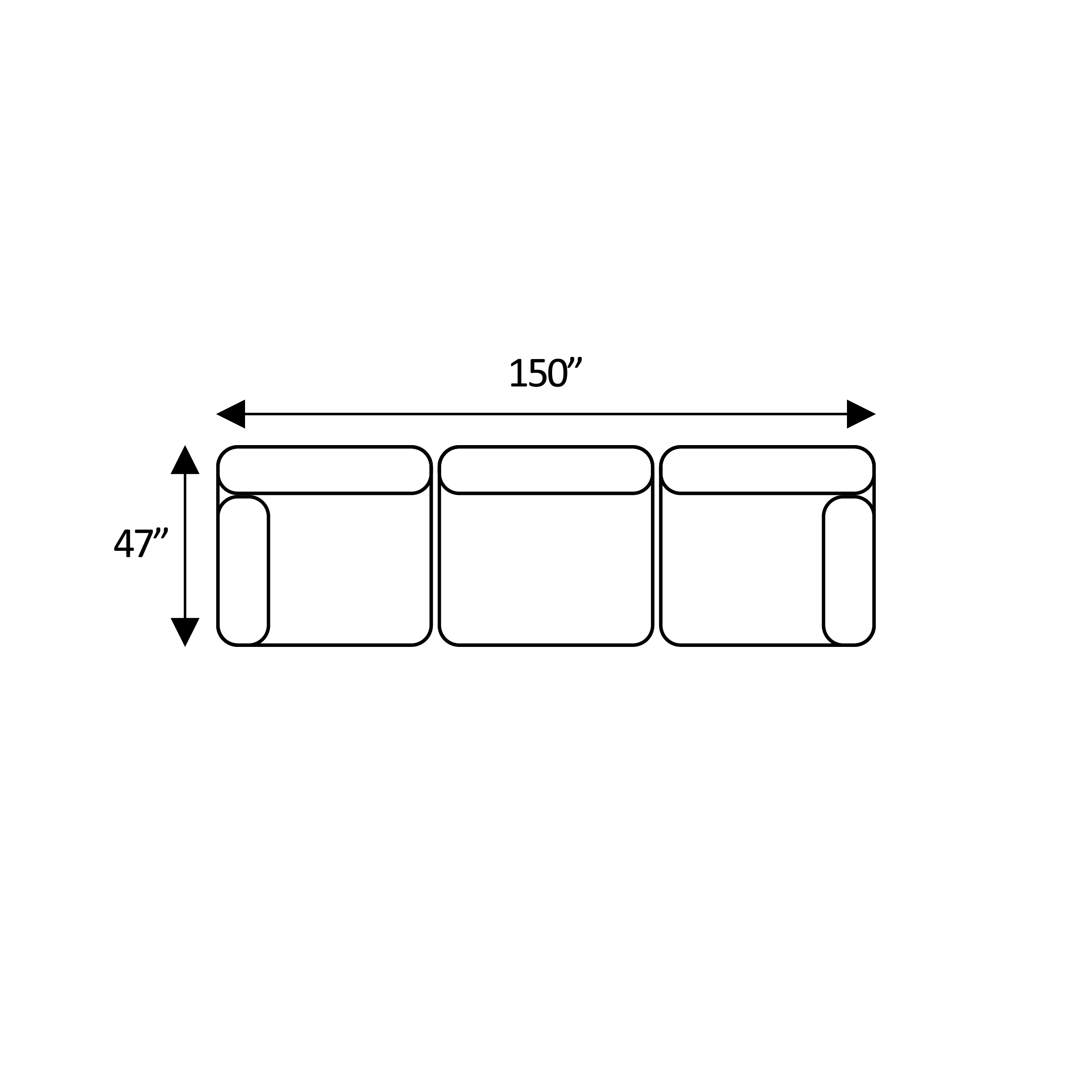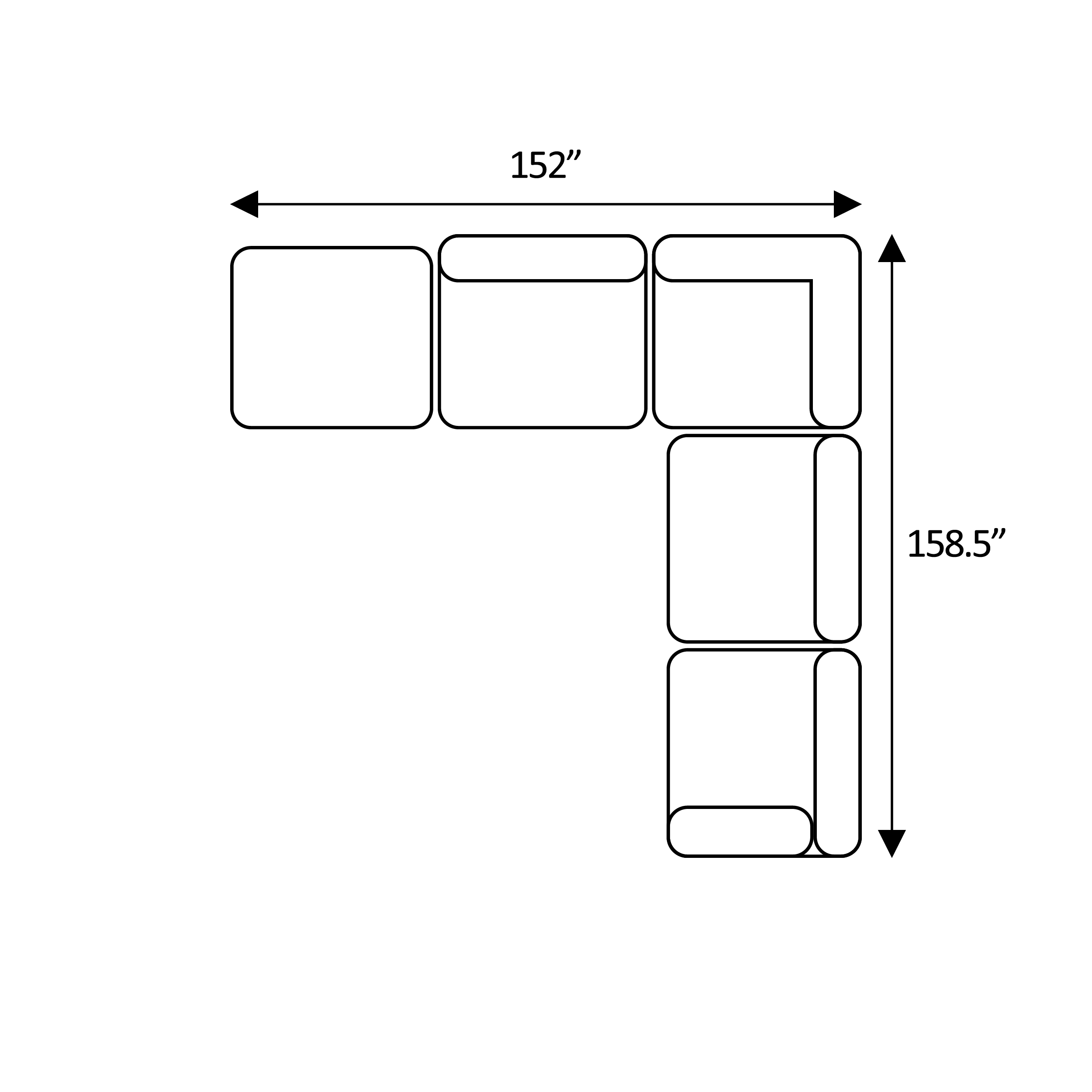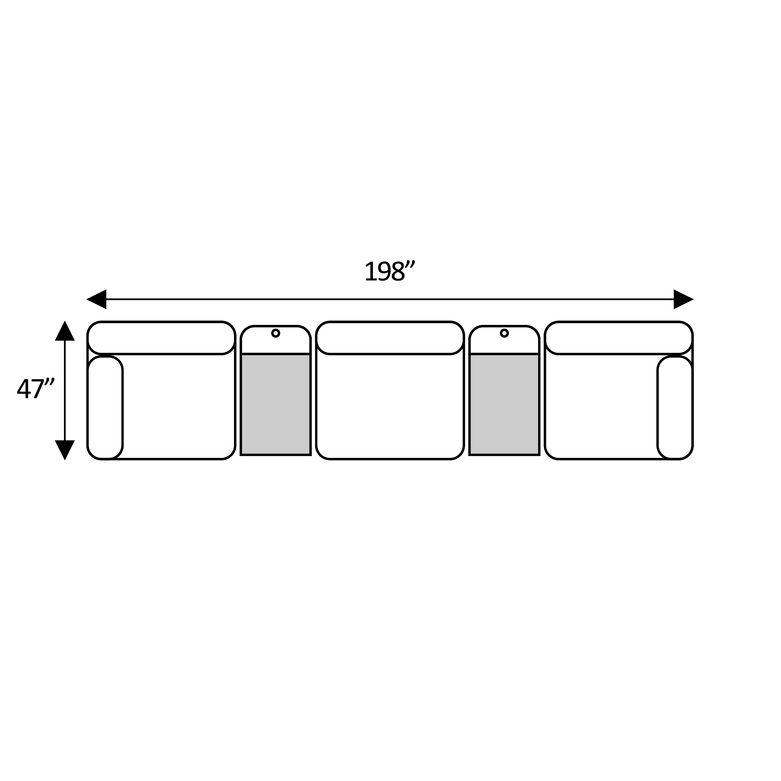 Width: 198“ × Depth: 47“ × Height: 34.5“