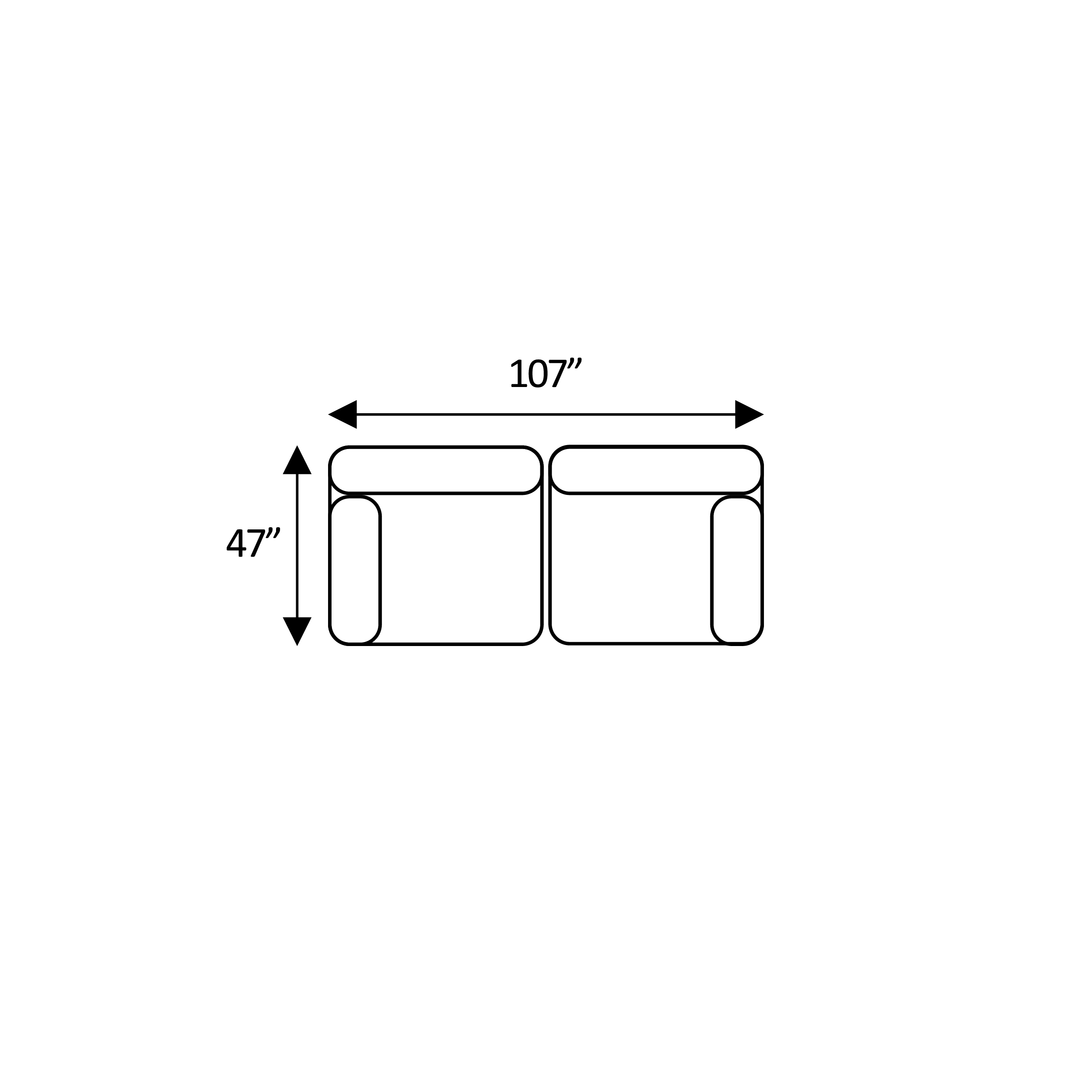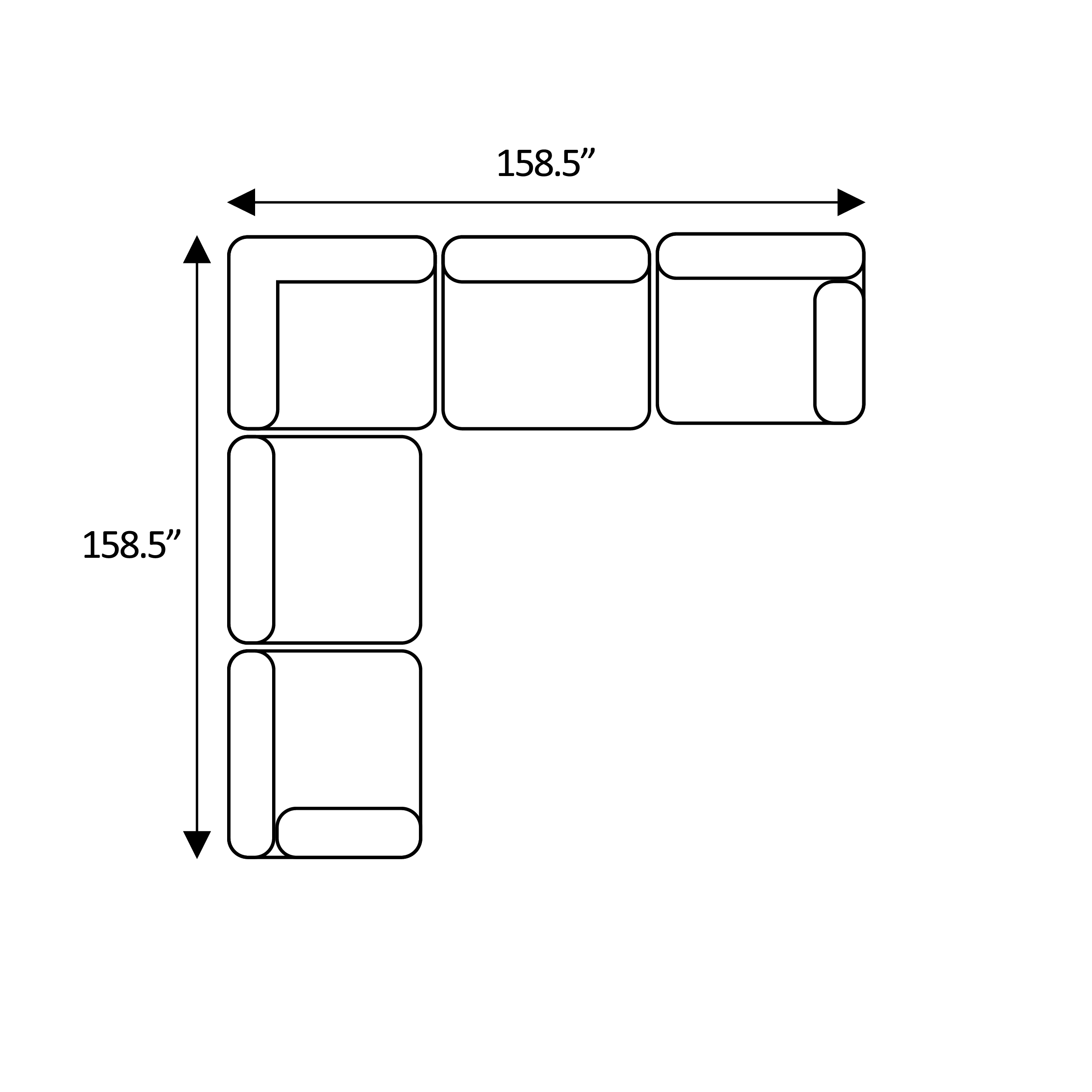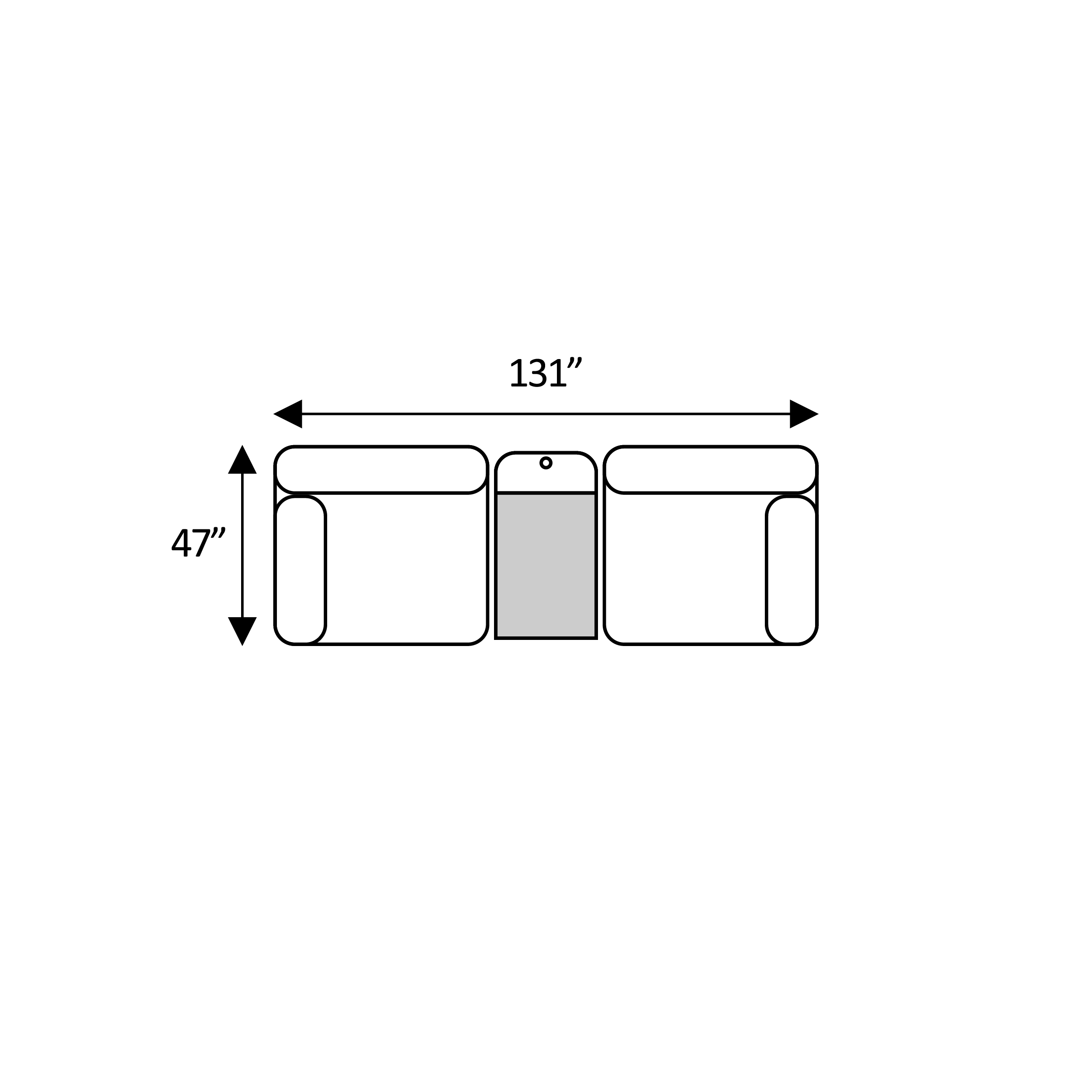 Width: 198“ × Depth: 47“ × Height: 34.5“