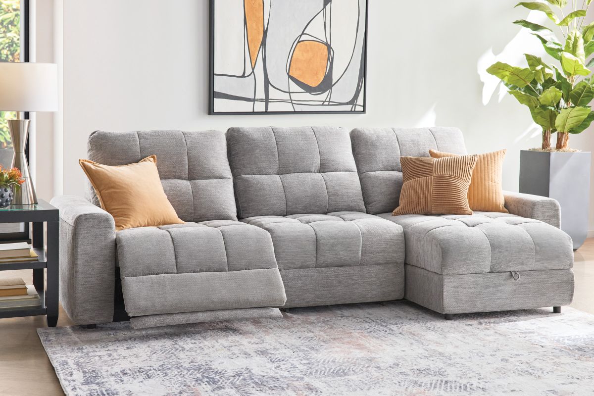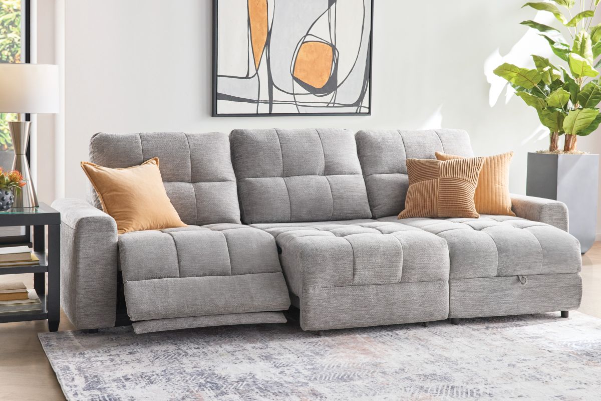 Elevate your living space with the versatile and comfortable Phoenix collection, thoughtfully crafted for both style and functionality. With its modular design, this sectional allows for customizable configurations to perfectly fit your space and lifestyle. Featuring power reclining seats with effortless relaxation at the touch of a button and smart storage solutions like a lift-top chaise to keep your essentials close at hand. The wall-hugger design saves valuable space by allowing the sectional to recline while placed just inches away from the wall. Upholstered in a soft, durable fabric, the Phoenix features generously padded cushions and tufted details for a sleek yet cozy look. Whether you’re lounging solo or entertaining guests, the Phoenix delivers unmatched comfort and convenience.
